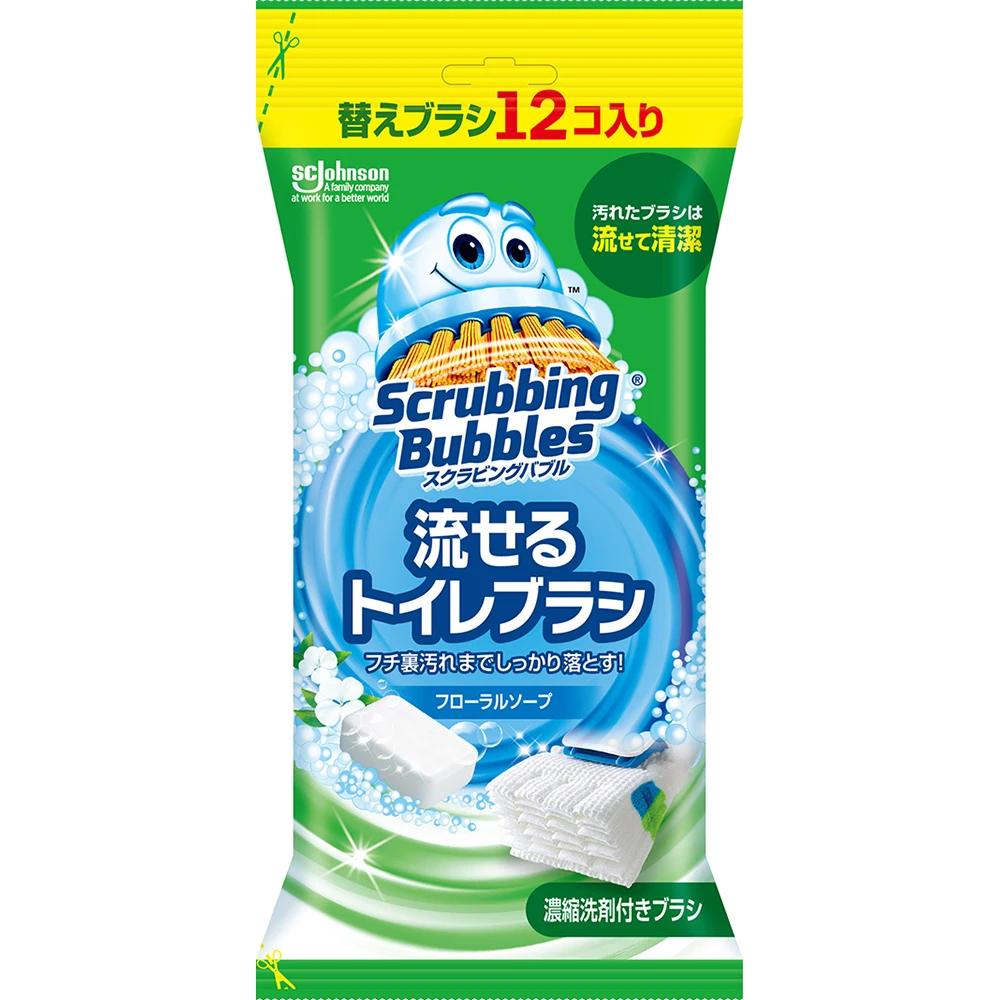 スクラビングバブル 流せるトイレブラシ 付替(12コ入) 12pcs Refill 庄臣Johnson一次性马桶刷厕所含清洁厕剂无死角套装替换刷头12枚装