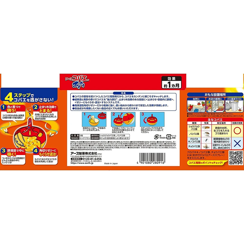 コバエがホイホイ [2個入] 灭苍蝇灭果蝇甜味剂陷阱一盒两只装一个月时效期 fly trap killer that last for 1 months