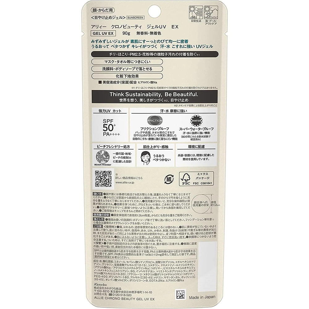 原ALLIE绿色防晒进化版! ALLIE Chrono Beauty Gel UV EX SPF50+/PA++++ 90g嘉娜宝ALLIE防晒霜绿色添加玻尿酸的高保湿防晒矿物隔离 防汗防油纸防摩擦 SPF50+/PA++++