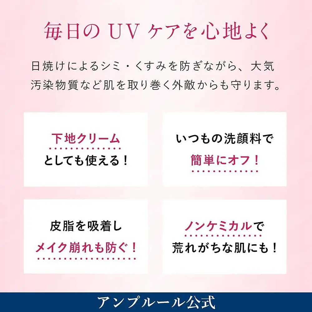 轻盈无肤感的防晒 简直跟润肤乳一样无压力Ampleur Sunscreen Essence Ruxury White W Protect Uv Tone Up 30G Spf50+Pa ++++ 日本专柜ampleur防晒隔离润色防晒隔离轻底妆粉色提亮肤色祛除暗哑50倍最高防晒系数养肤概念防晒隔离底妆防晒底妆
