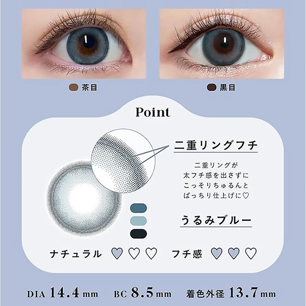 | 含水量 | 38.5% (chocolat / almond) 38% (cassis brown / pearl gray / milk beige / cream pink) |