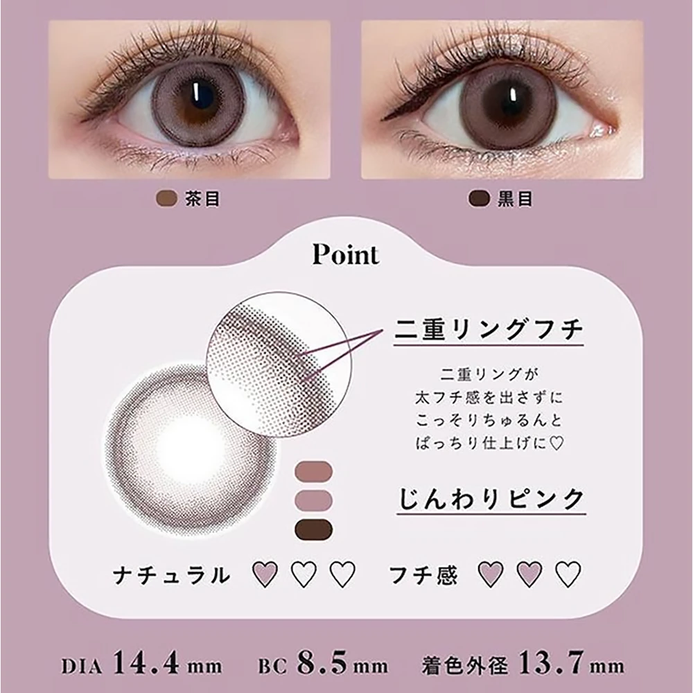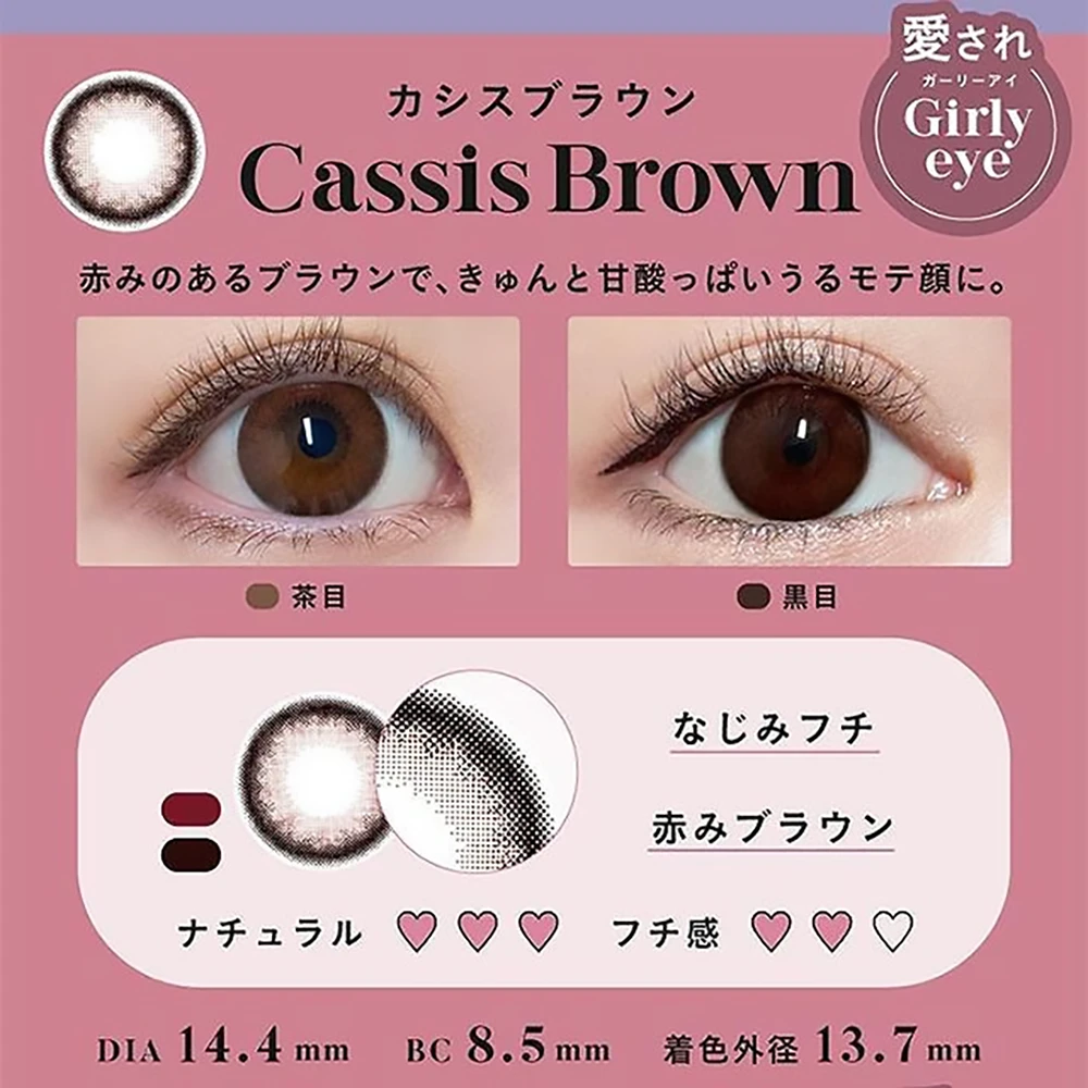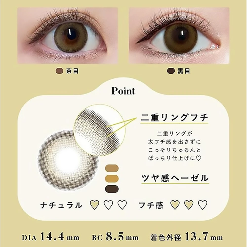 | 直径/着色 | 14.2mm/着色直径13.6mm chocolat)/13.7mm (almond )/ 13.8mm (cassis brown / pearl grey / milk beige / cream pink) |