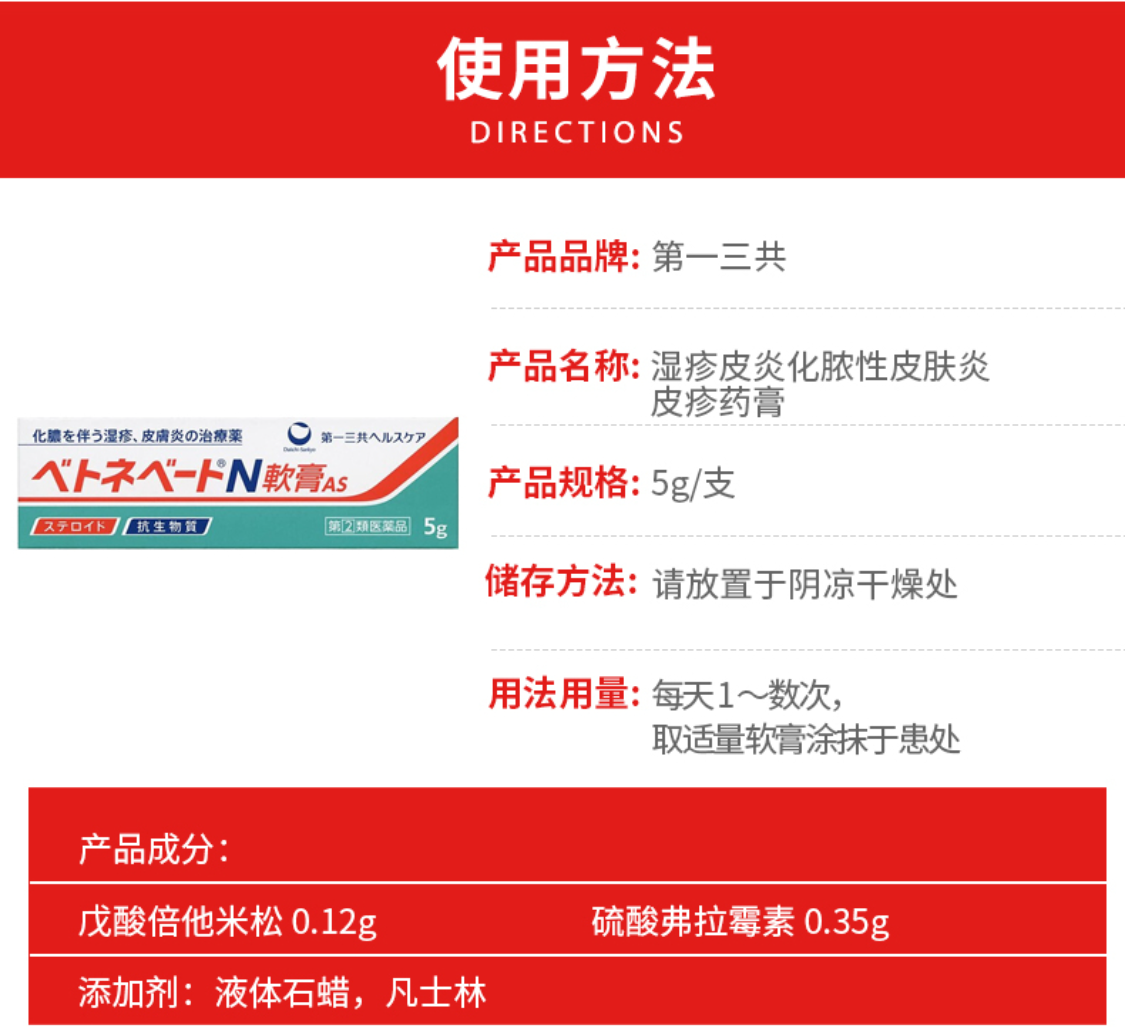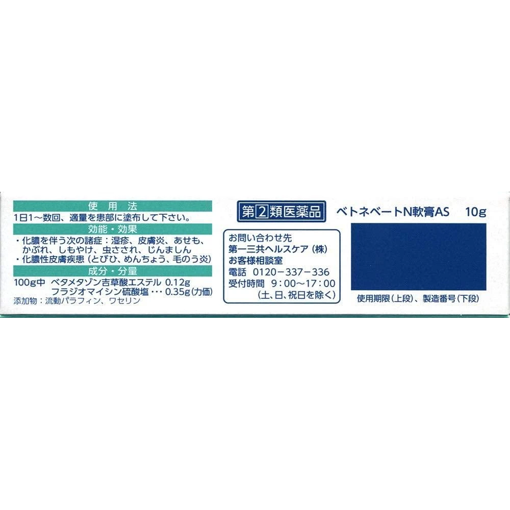 Betnevate N軟膏AS 10g 应急湿疹软膏湿疹膏10g 化脓类红肿类湿疹皮肤炎症适用 第一三共湿疹膏 化脓性湿疹皮炎药膏 ベトネベートN软膏AS 5G