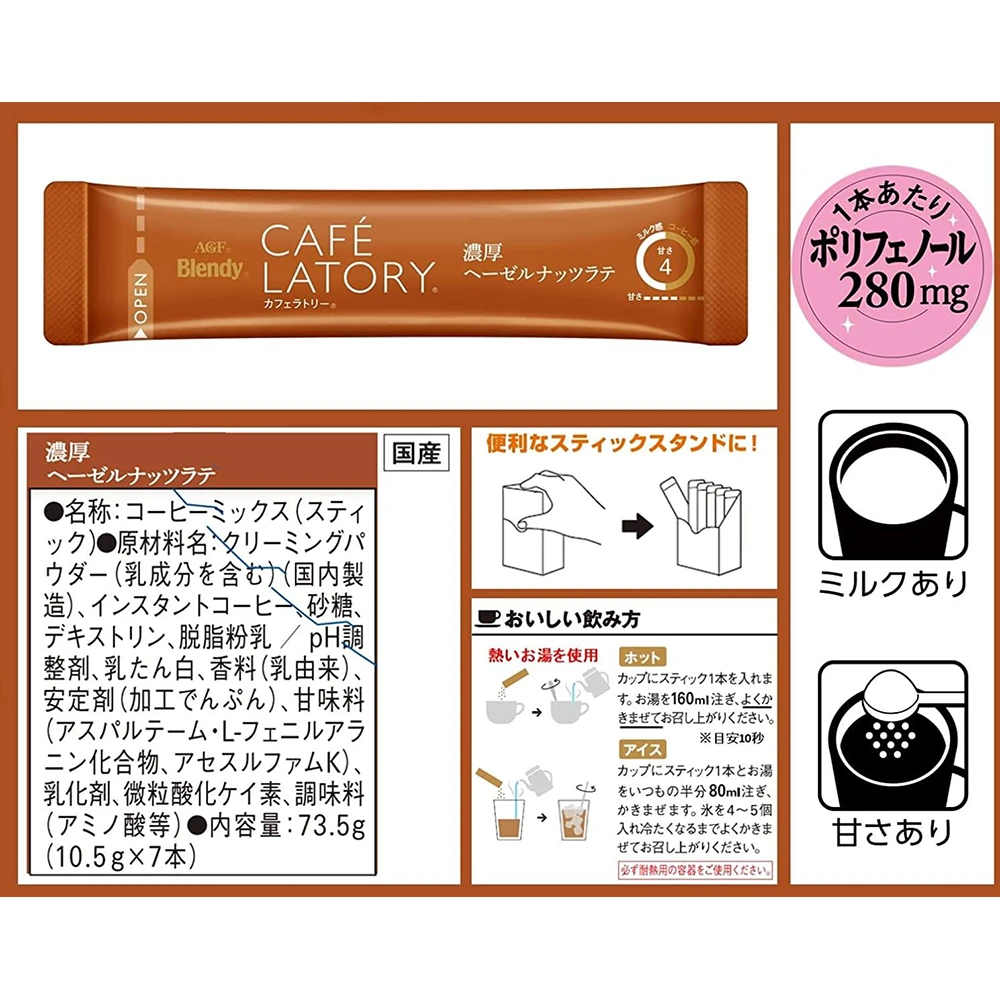 Blendy Cafe Latory Rich Hazelnut Latte 7 Stick Blendy Coffee浓醇咖啡榛子拿铁咖啡7条入