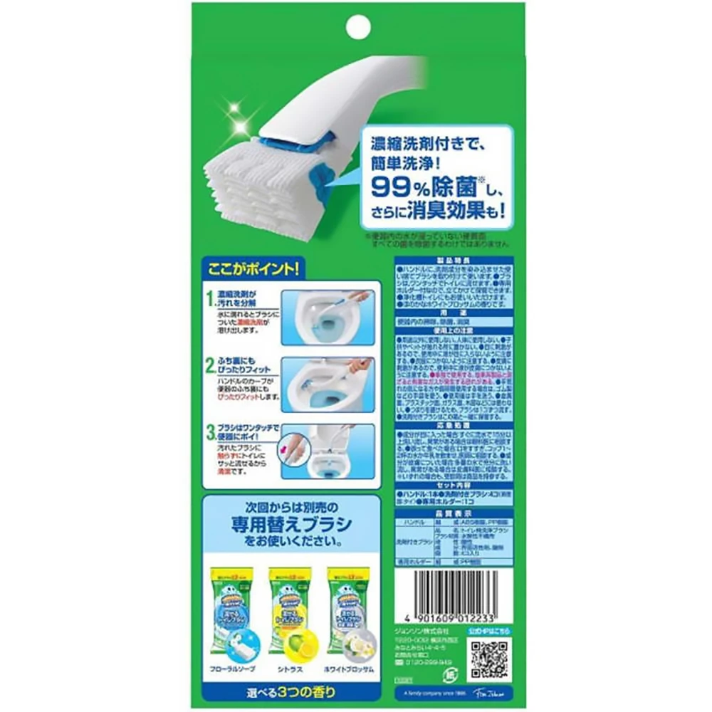 スクラビングバブル 流せるトイレブラシ 除菌消臭プラス ホワイトブロッサム Body + 4 Refill Johnson庄臣全方位无死角清洁马桶刷4枚头带浓缩清洁剂洁厕剂