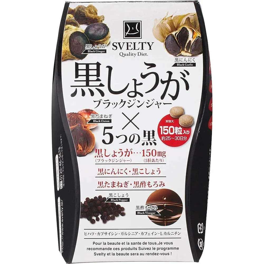 • Svelty Black Ginger, 5 Blacks  黑酵素 黑生姜酵素 酵母生酵素5种黑色食物提取 燃脂纤体丸  去水肿 暖手脚150粒 5粒=1小时运动 30日量