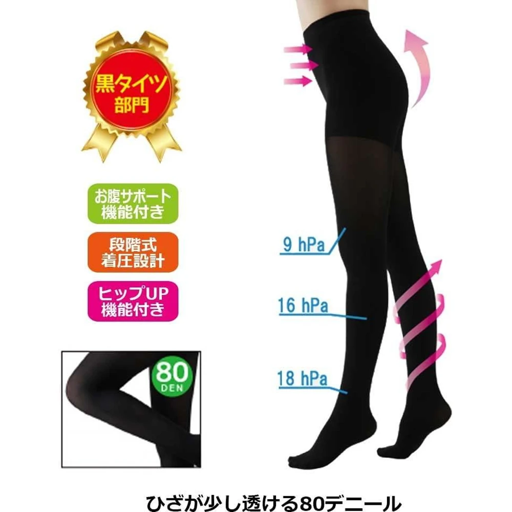 Calorie Off Hip Up & Stomach Support 80D #M-L日本小猪打底袜打底裤连袜款自发热款ml号80d