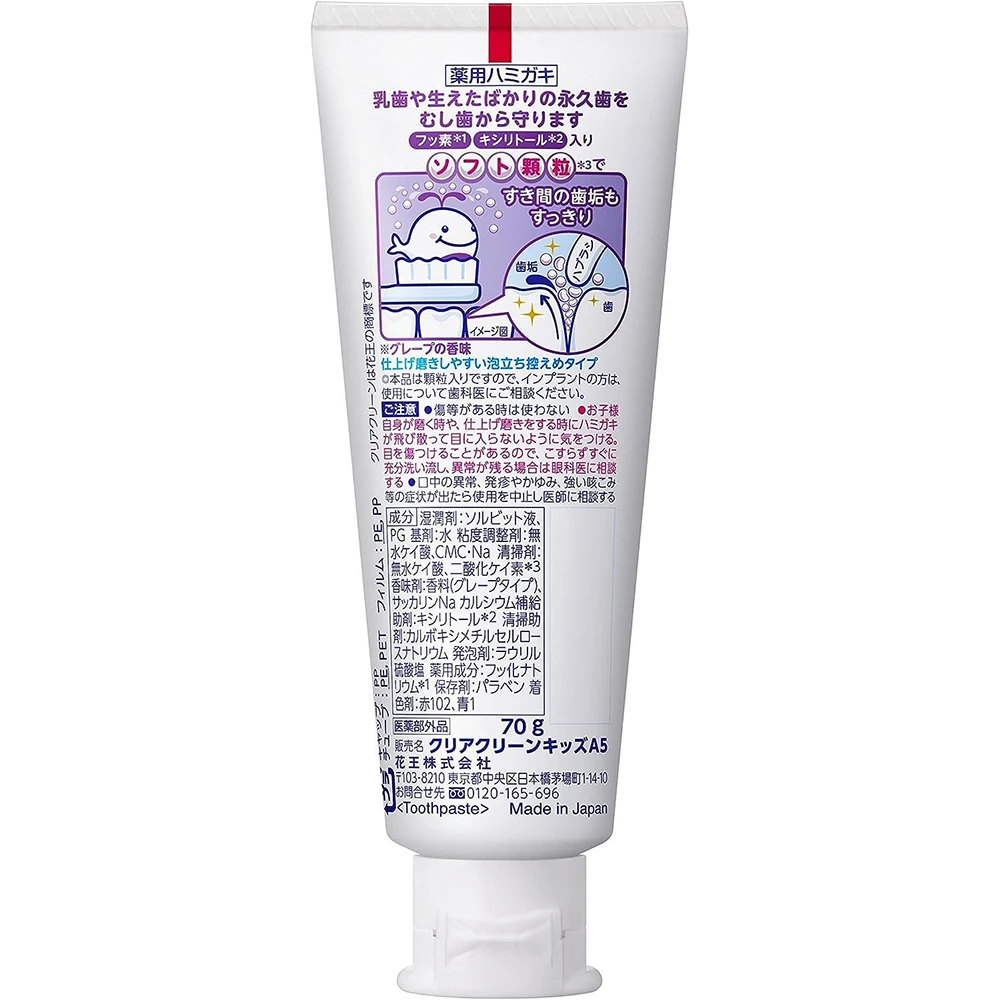 Clear Clean Kids #Grape 70g花王儿童换牙期可吞咽防蛀护齿含氟牙膏去渍水果味葡萄