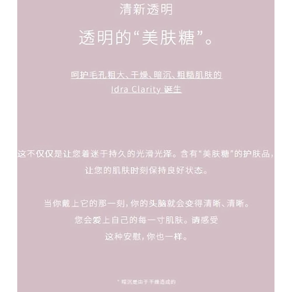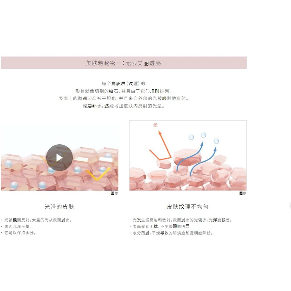 清新透明—-利用“美肤糖”新科技护肤理念而提升皮肤的透明度。