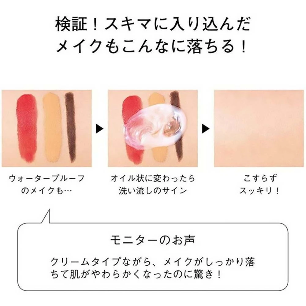 能自动识别彩妆并清除污垢,却牢牢的锁住水分。当卸妆膏变得透明油脂的时候,就是卸妆完成了