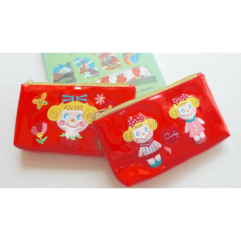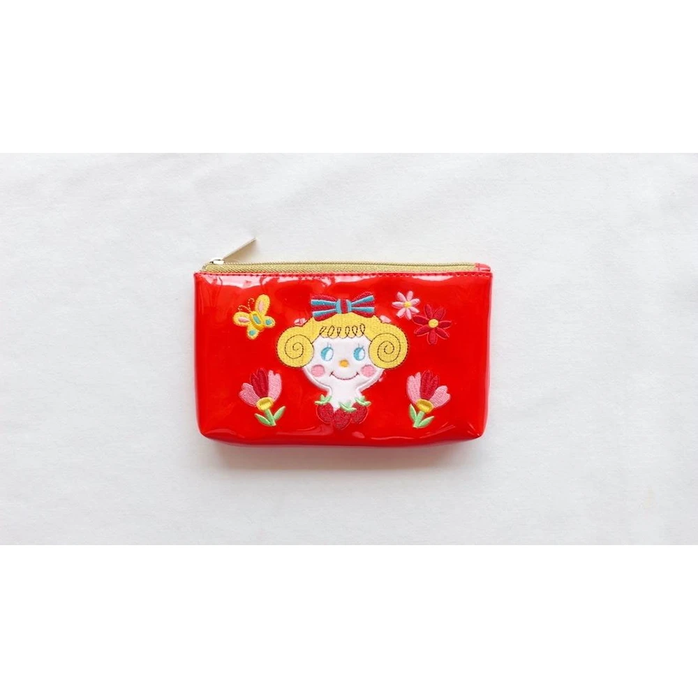 Curly Collection Sale Horizontal Enamel Patch Pouch Ichigo-Chan (Flower) X Red