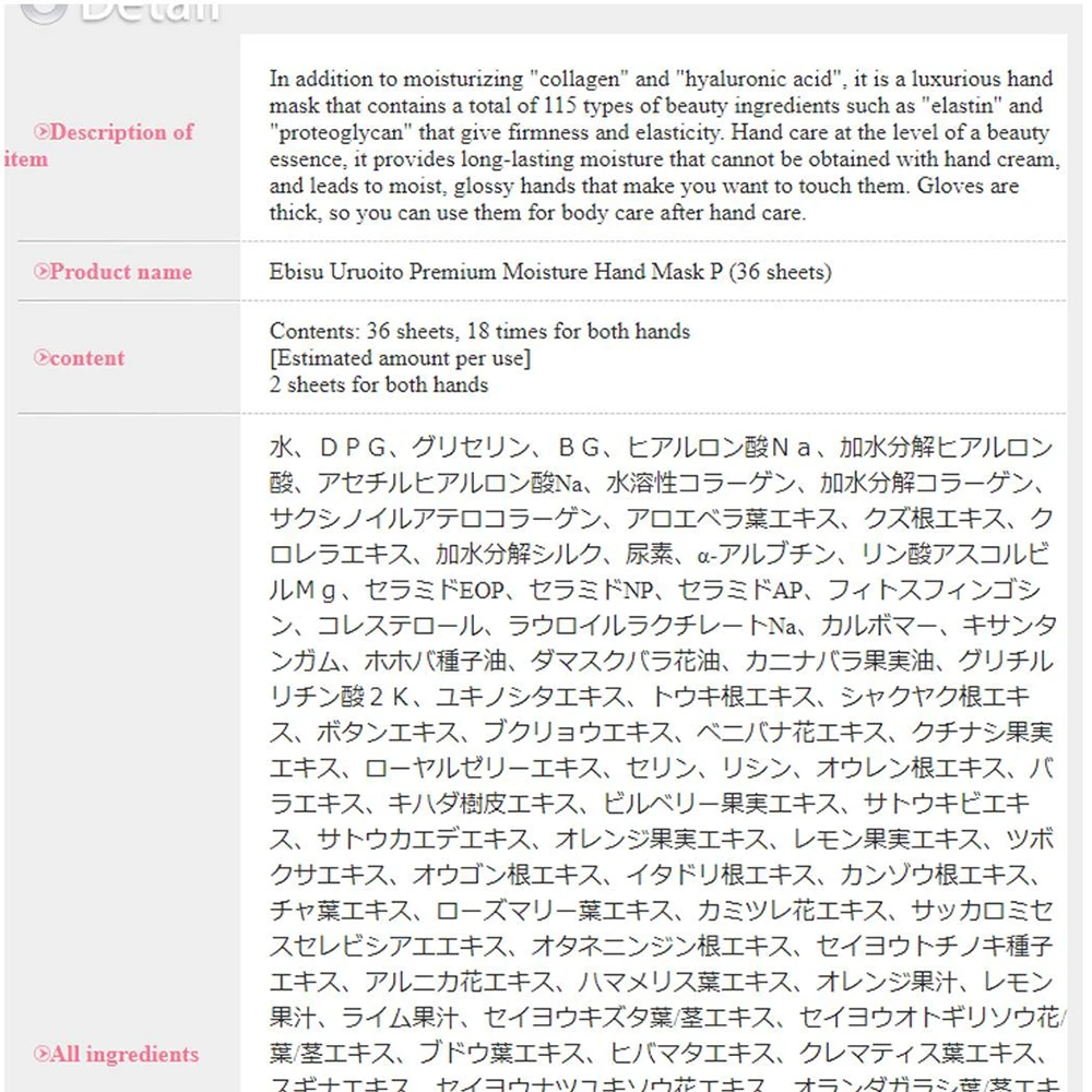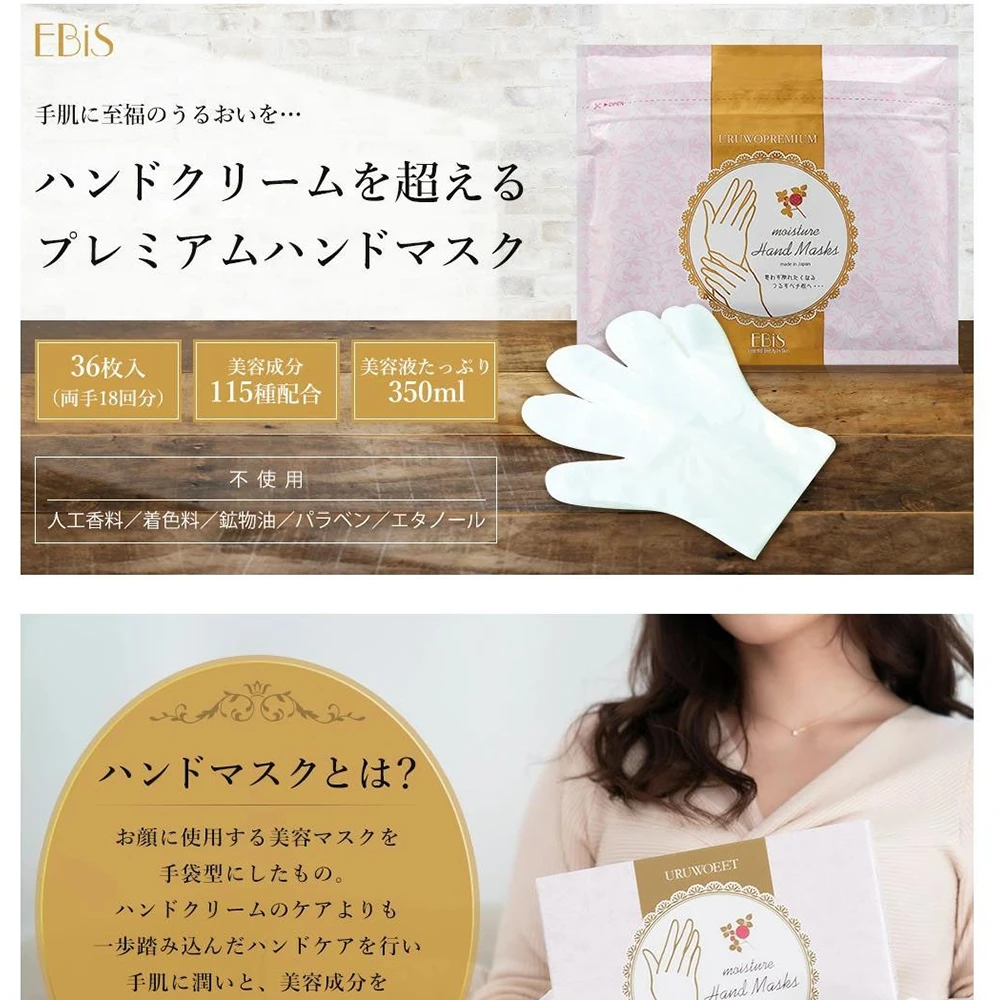Ebis Uruwoeet Moisture Hand Mask 36pcs 日本ebis手膜润手手膜36片装18付入 连续三年日本乐天销量第一名的护手手膜