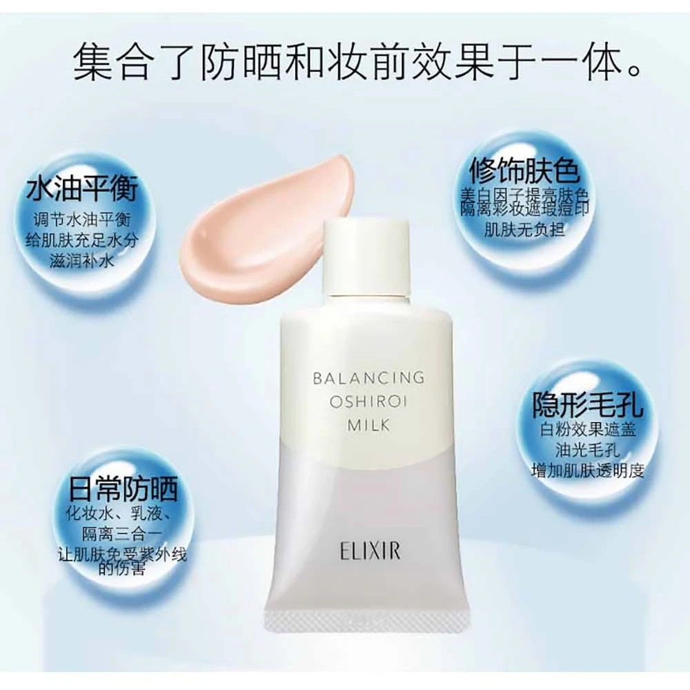 盖油光、毛孔,保持滋润Elixir Balancing Oshiroi Milk SPF50+ PA++++ 35g 资生堂怡丽丝尔水油平衡防晒隔离乳液 SPF50 白是硬道理