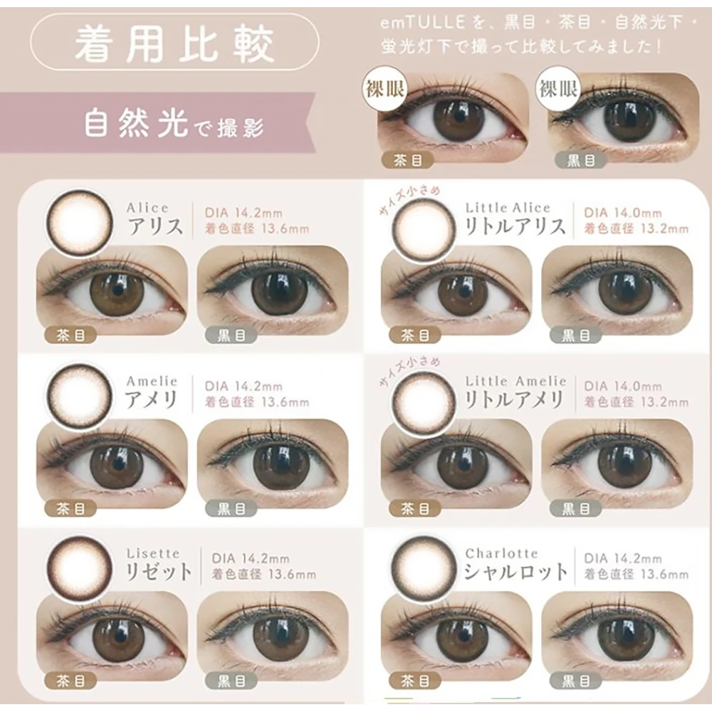 你想要的小圆环设计美瞳日抛全部在这里!em TULLE Color Contact 1 day 10pcs Tulle美瞳日抛小圆环系列日抛1片装 低含水率防止眼干防紫外线UV设计