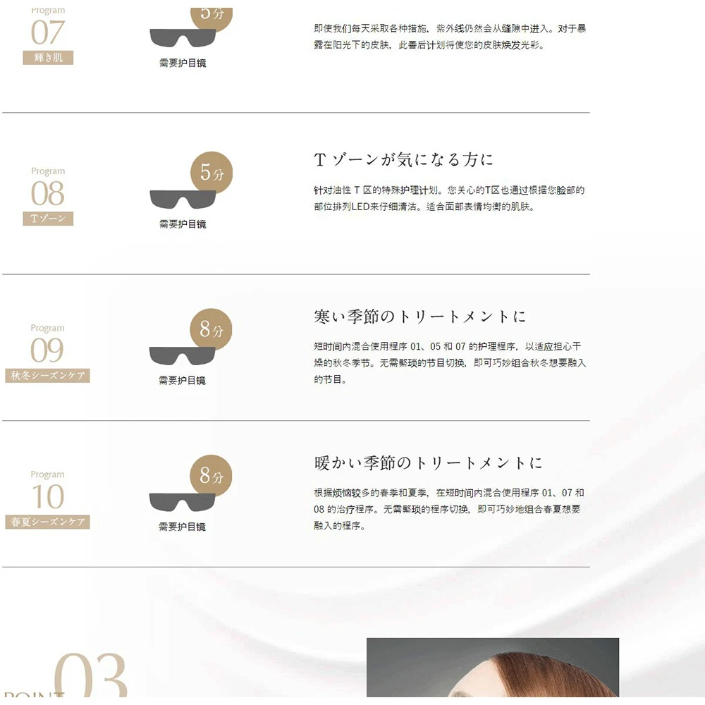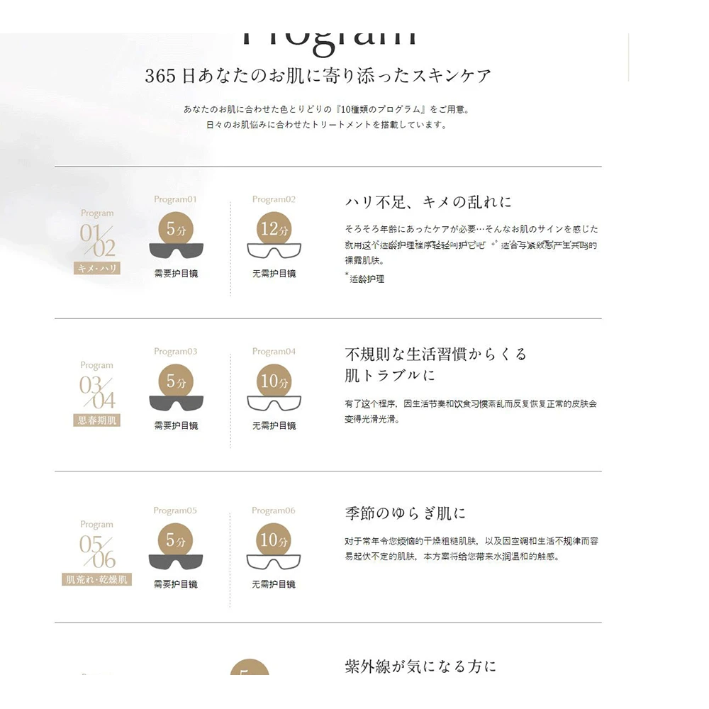 因此,10 种针对不同目的的皮肤护理治疗模式,包括“T 区”护理程序,已通过一个单元实现。