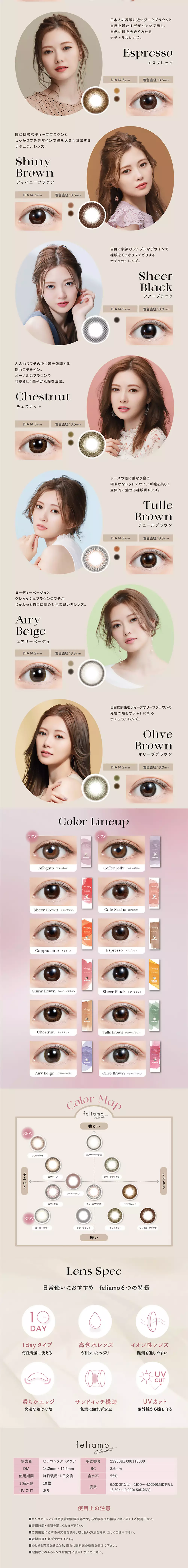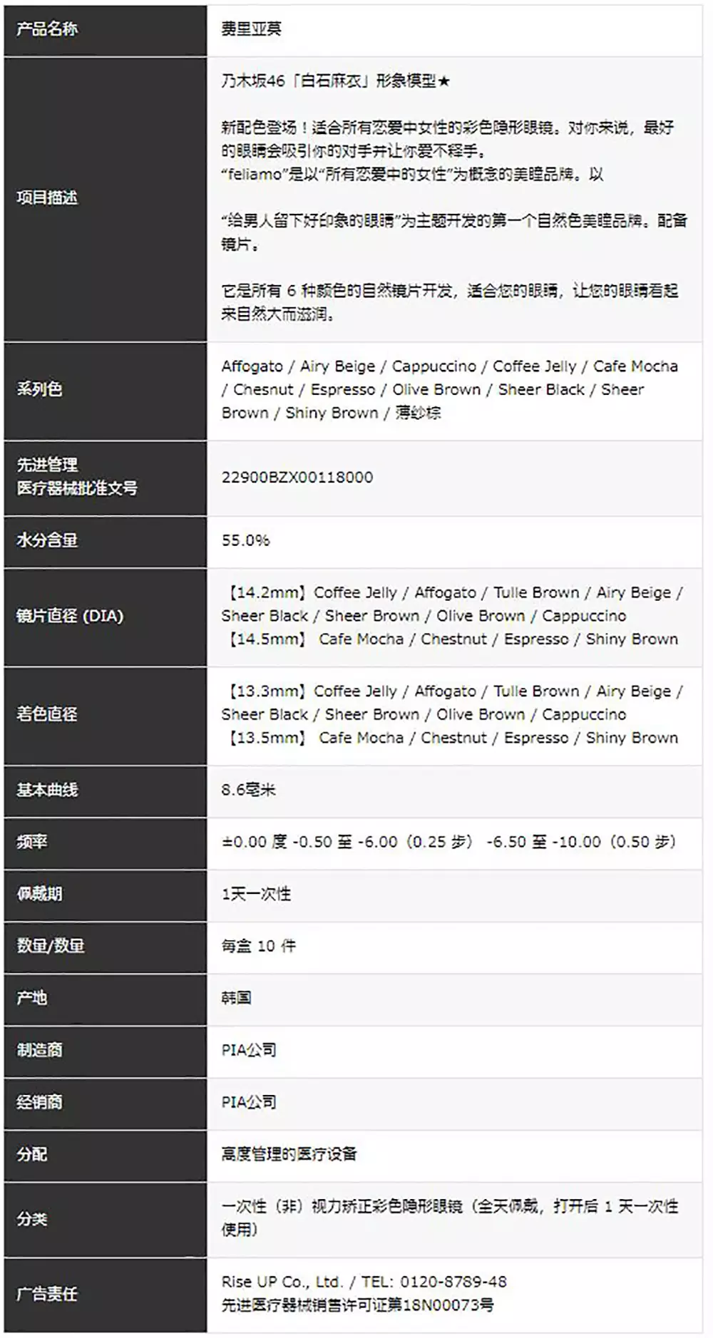 feliamo 1day 10pcs日本美瞳日抛Feliamo日抛10片装白石麻衣代言款精致美瞳日抛 防UV紫外线55%含水率 非离子材料自然日常款