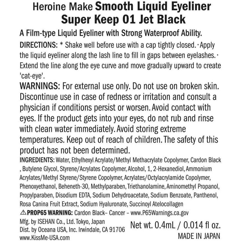 无敌持久的眼线液笔Heroine Make Smooth Liquid Eyeliner Super Keep 0.4ml Waterproof 奇士美(Kiss Me眼线笔kissme眼线液笔)梦幻泪眼眼线笔 防水不晕染眼线液笔0.4ml多色入防汗防油纸防水