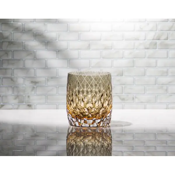 KAGAMI Crystal Edo Kiriko Glass by Master Artisan Hideaki Shinohara – T754-2641-WUK ‘Distant Thunder’ Rock Glass, Layered Amber & Black 江户切子远雷套色水晶玻璃洛克杯威士忌洋酒杯