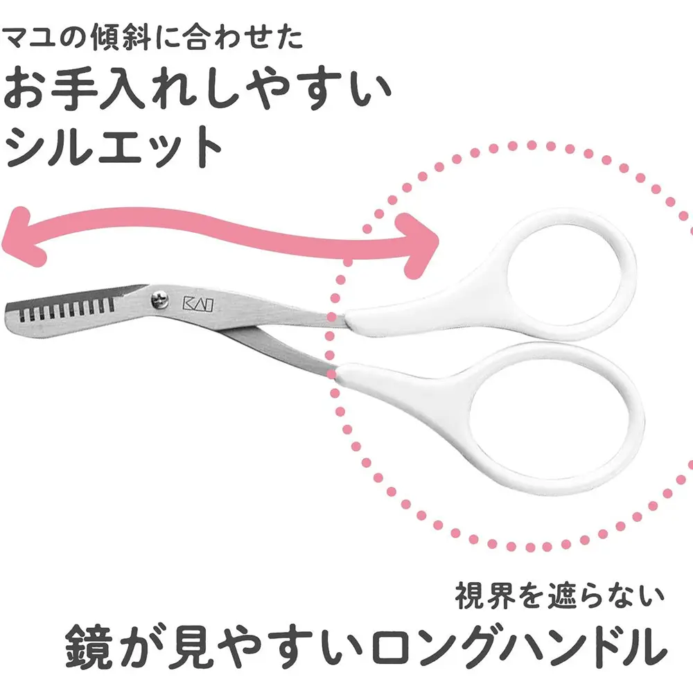 KAI Eyebrow Scissors, Thinning Blade, Long Handle, Thin Eyebrows, Made in Japan, Scissors for Eyebrows and Beard, KQ3155