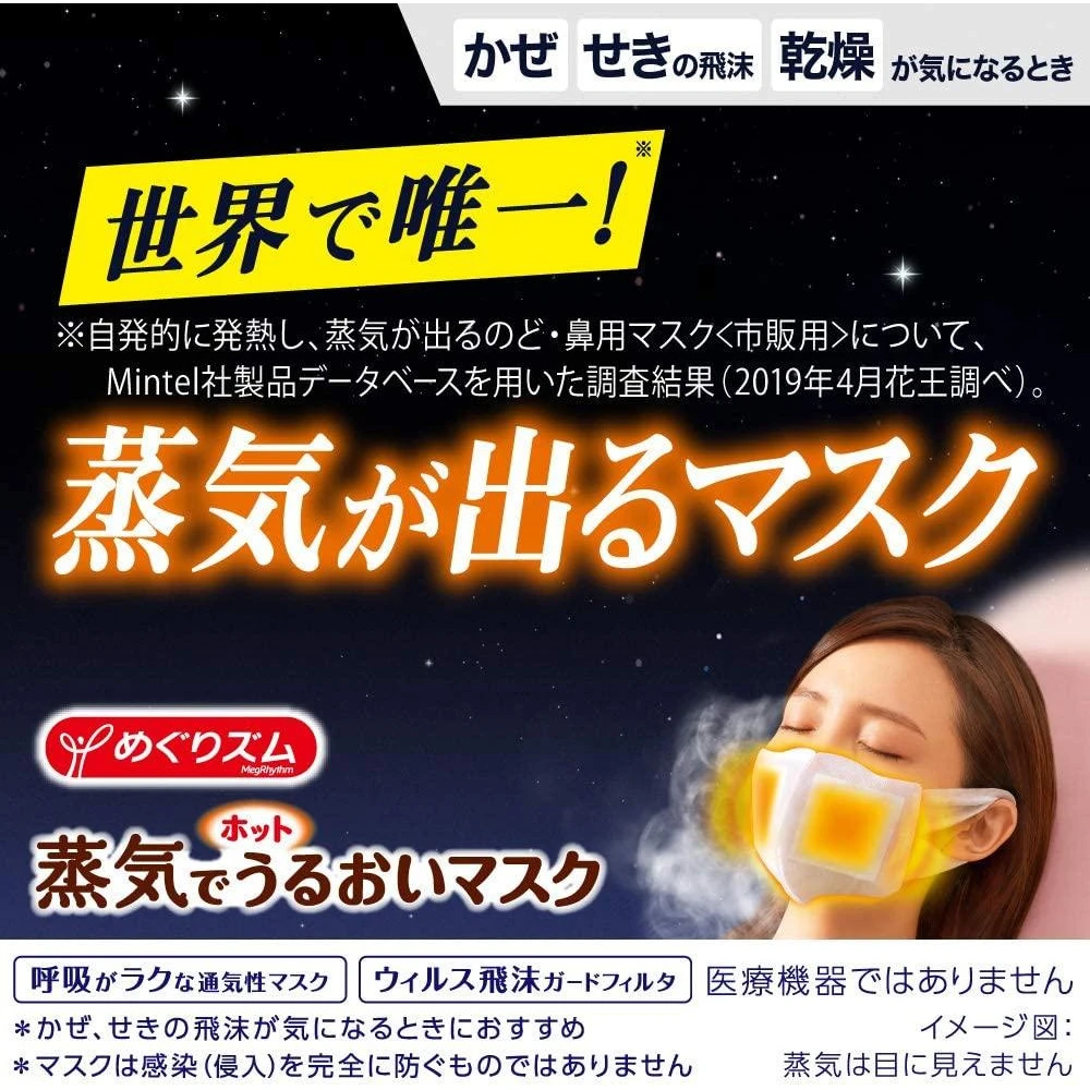めぐりズム 蒸気でホットうるおいマスク(のどぬ~るぬれマスク) Kao Megurism Hot Mask /花王蒸汽口罩缓解咽喉鼻腔干燥薰衣草薄荷香3枚