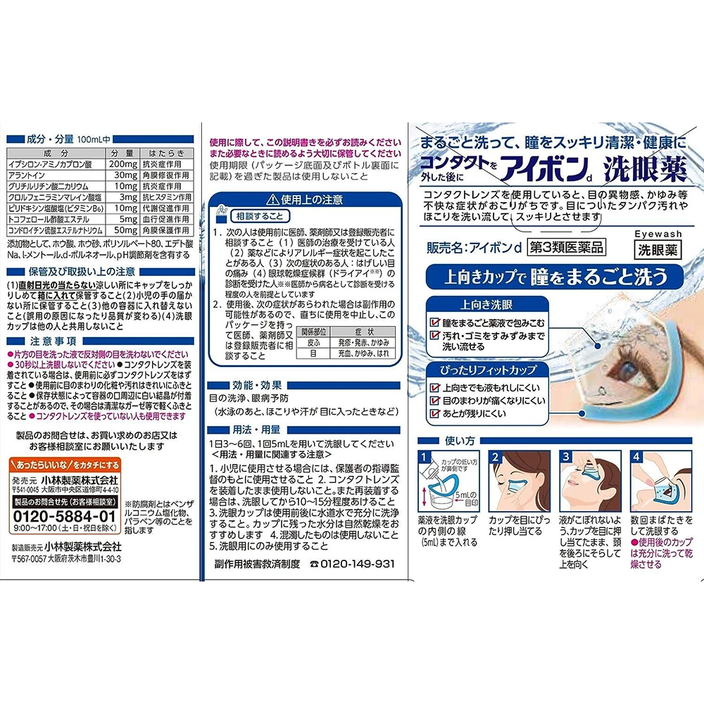 Kobayashi Eye Wash Eyebon D Mini 100ml #Blue小林制药洗眼液迷你装100ml深蓝色清凉度弱低刺激除红血丝适合眼睛敏感人士使用
