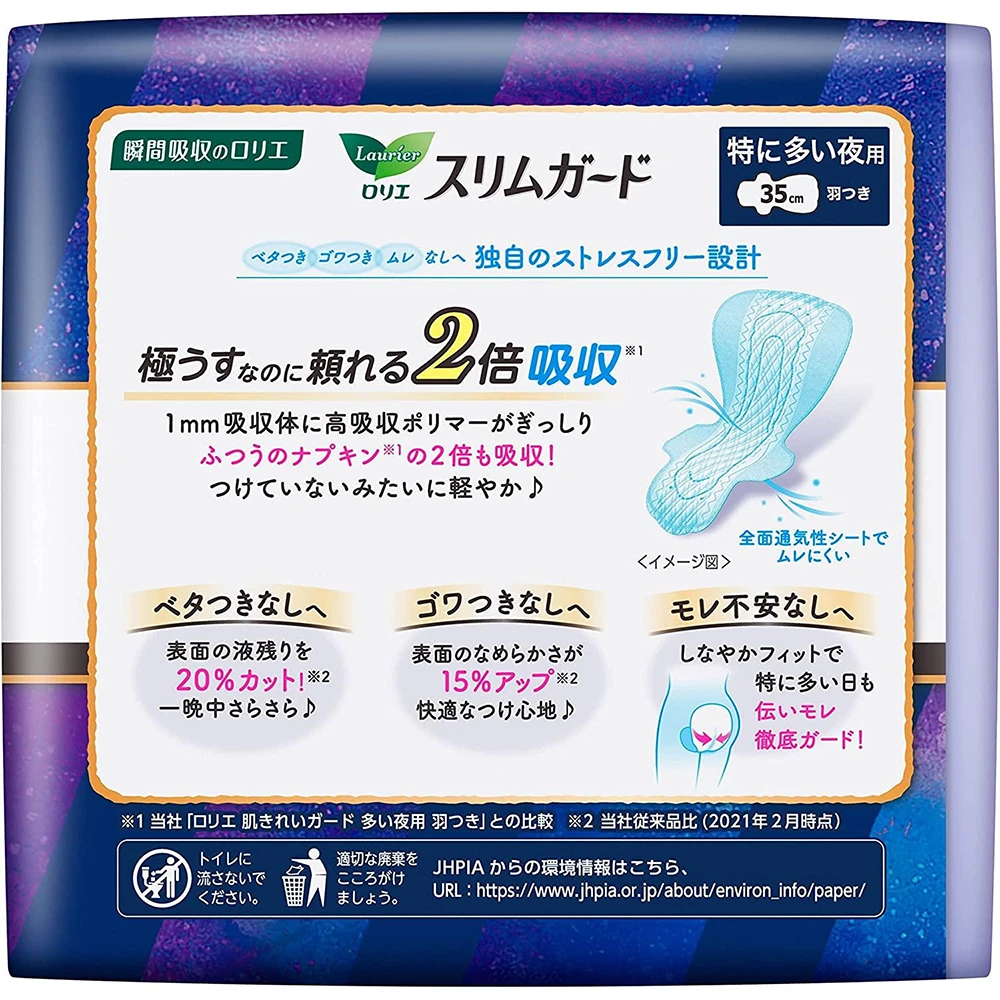 Laurier Slim Guard 35cm with Wing 13pcs 花王卫生巾乐而雅进口零触感夜用姨妈巾35cm13片