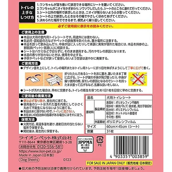 Lion Aroma Deodorizing Pet Sheet Wide 31 Sheets 狮王狗狗训导垫狗狗尿垫狮王狗狗31片装