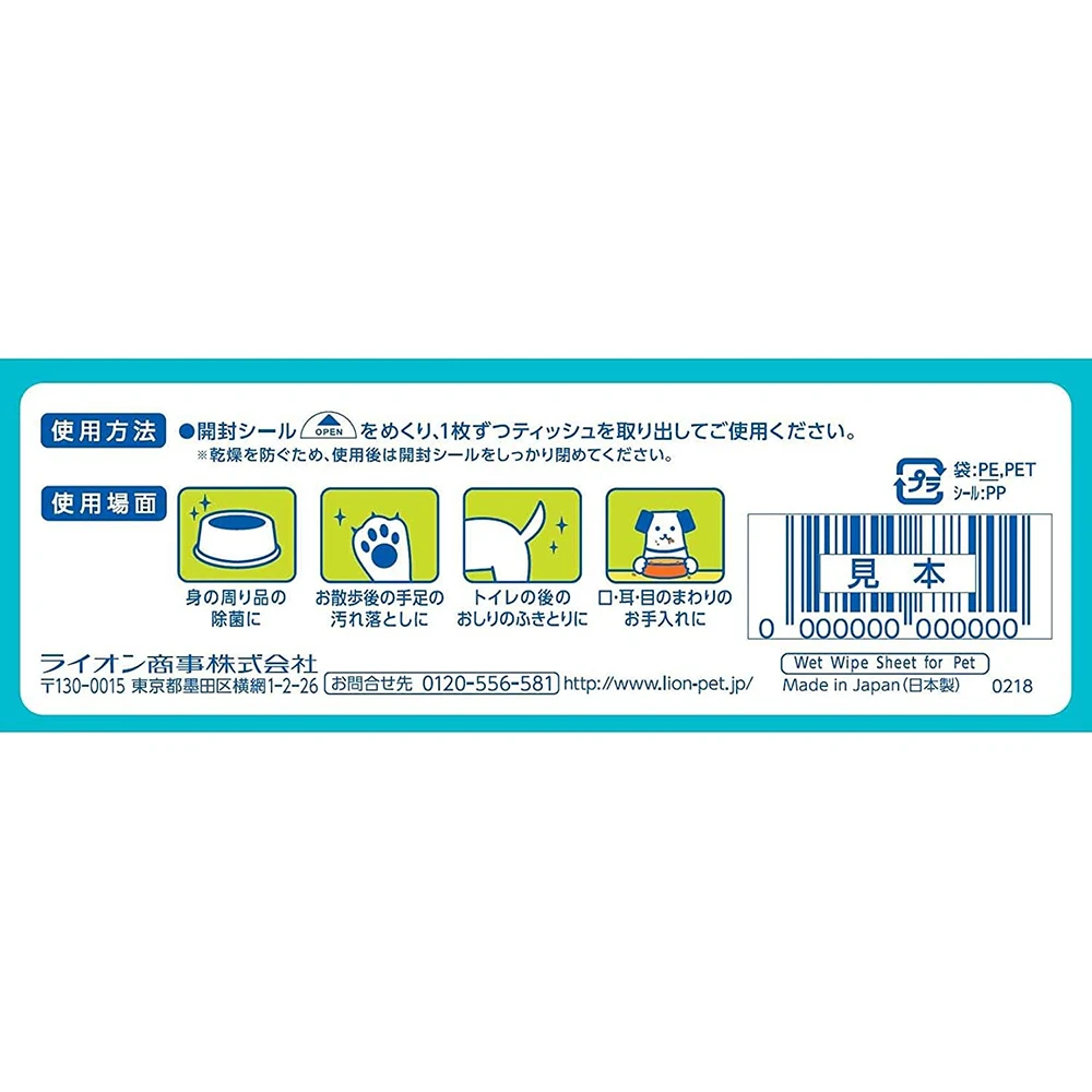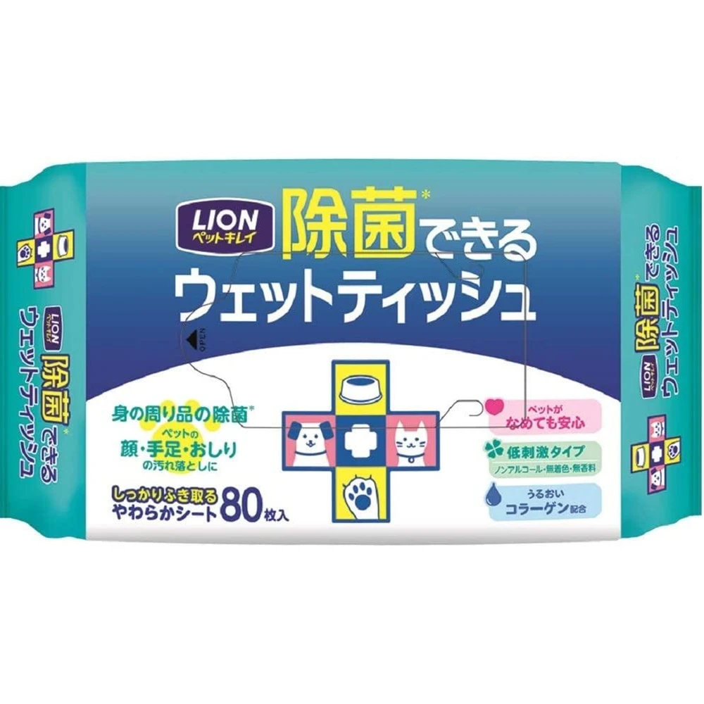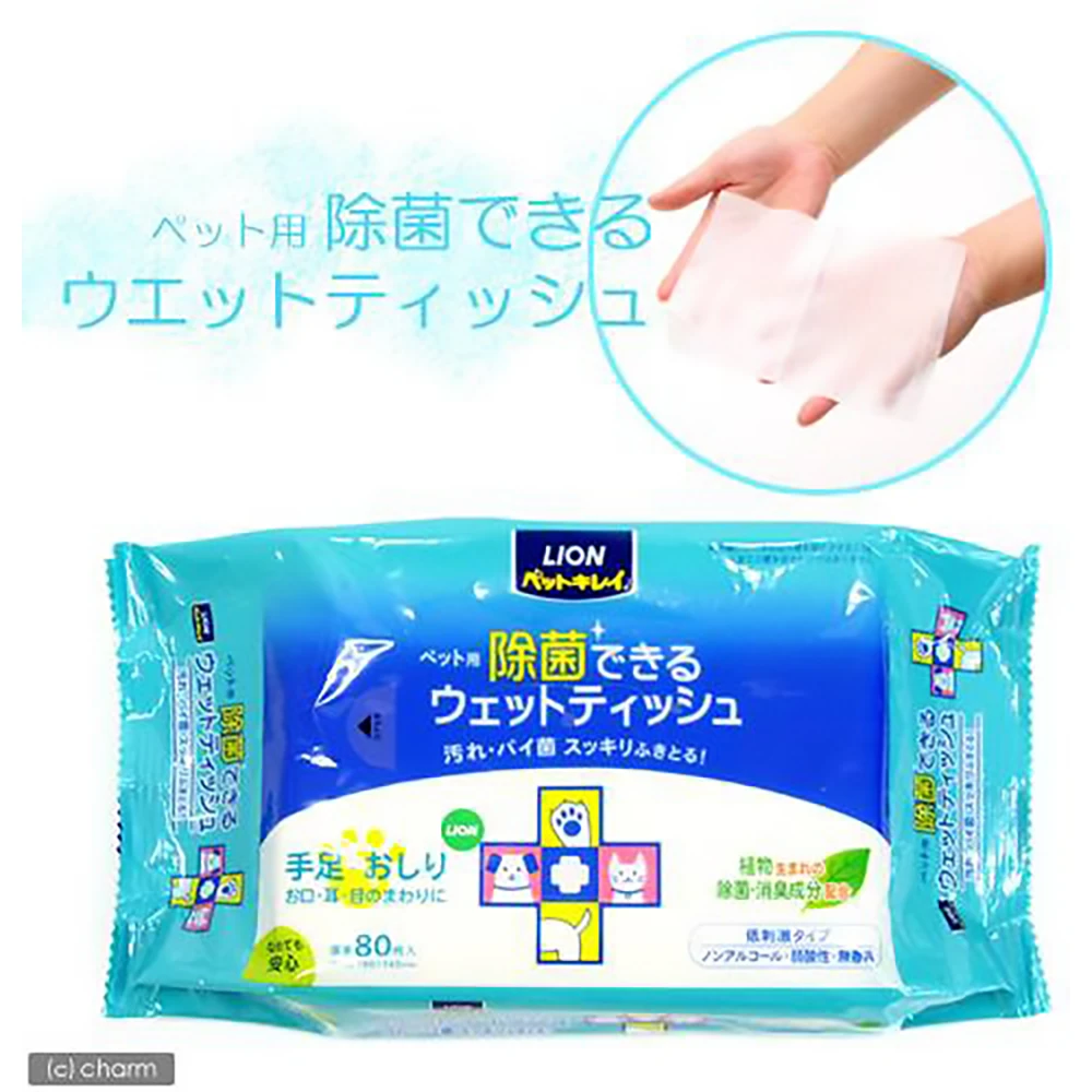 Lion Pet Kirei Wet Tissue 80pcs 狗狗用湿巾猫用湿巾宠物湿巾狮王宠物湿巾80片装温和杀菌清洁散步后排泄后用清爽卫生