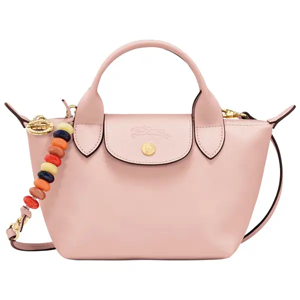 日本珑骧2024年限定春樱花薄粉Longchamp Le Pliage Extra Xs Top HandBag Nude -Cowhide Leather