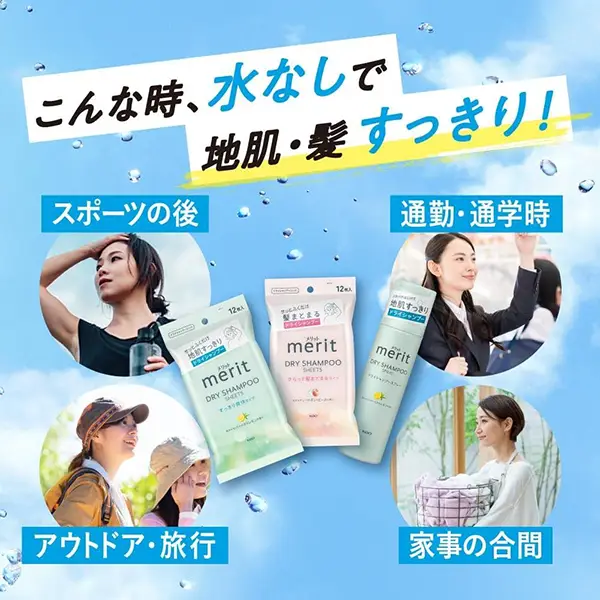 Merit Dry Shampoo Sheets, Hair-Smoothing Type, 12 Sheets 花王merit头发干洗湿巾 清爽清洁秀发柔顺 马鞭草柠檬香12片