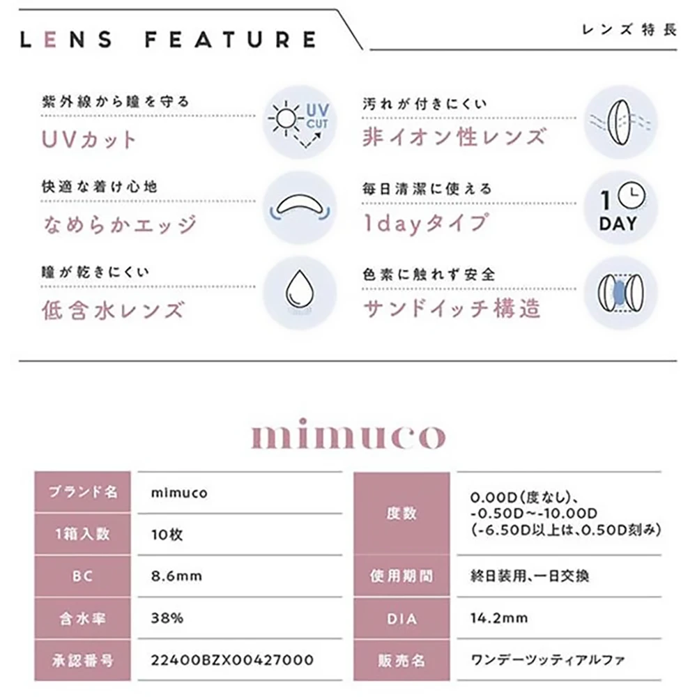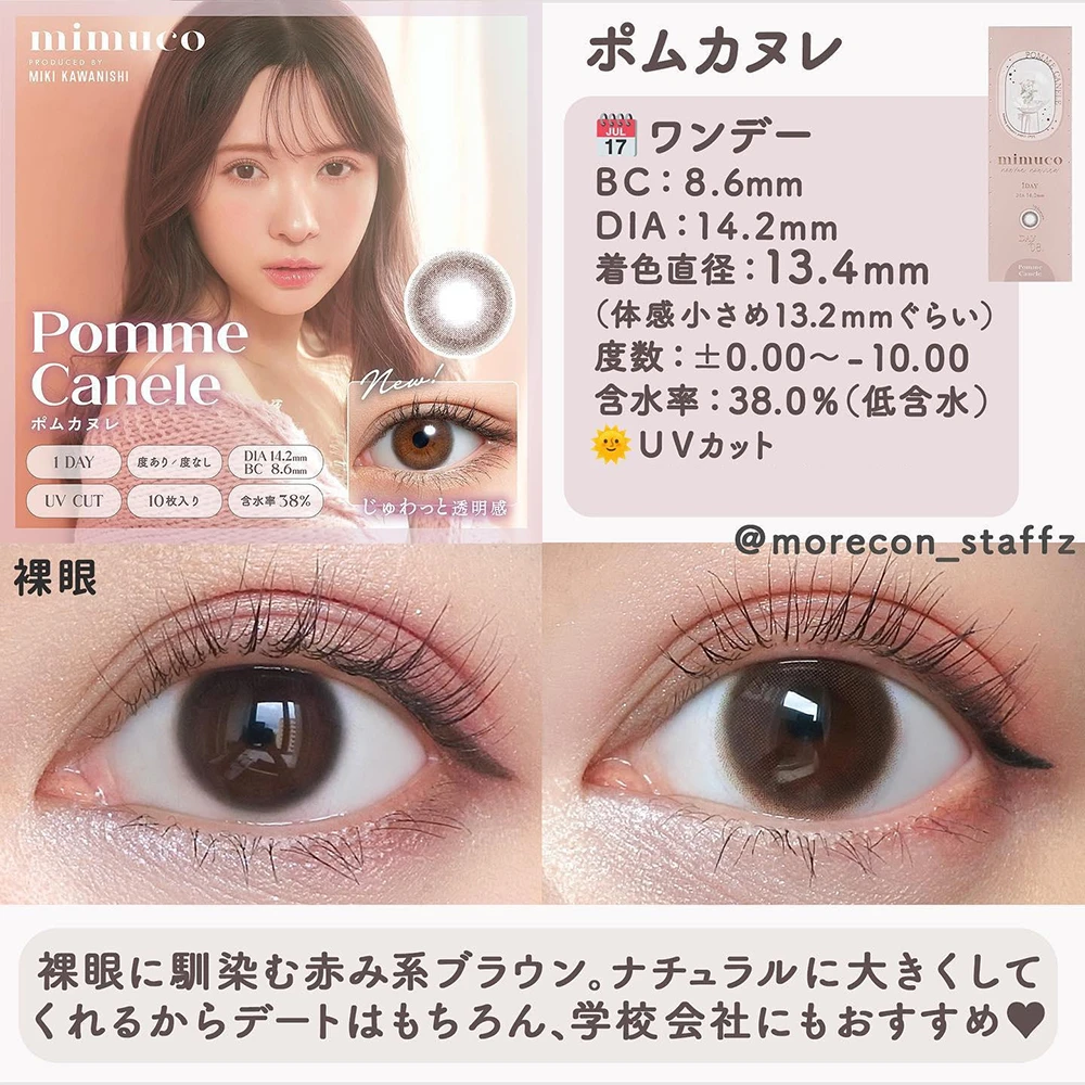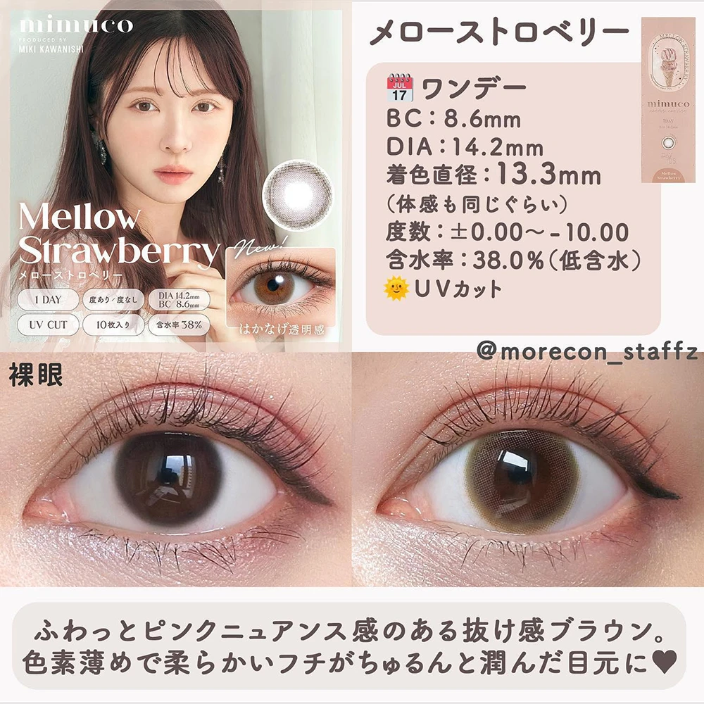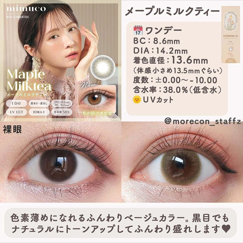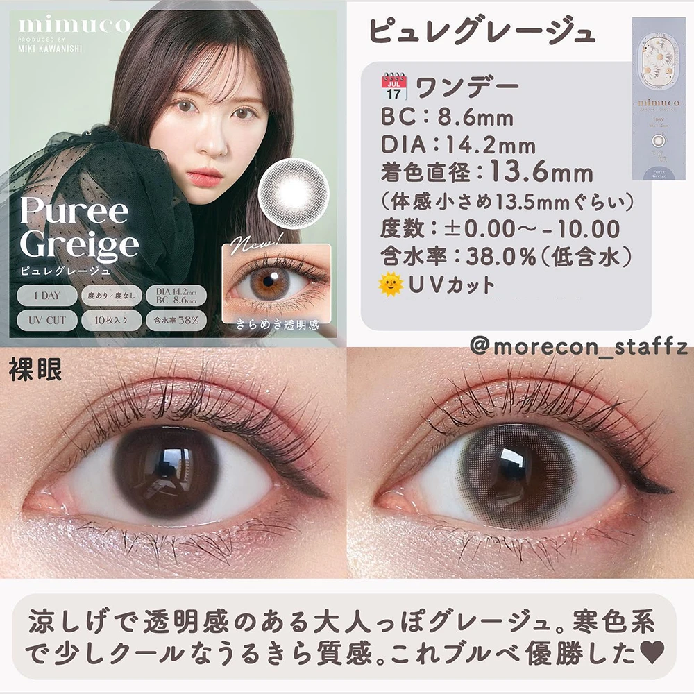 mimuco 1day 10pcs日本美瞳日抛mimuco 1day 日抛美瞳 1盒10片(5副) 川西美纪代言打造无辜眼神通透款美瞳日抛 evercolor旗下同公司产品 防紫外线设计