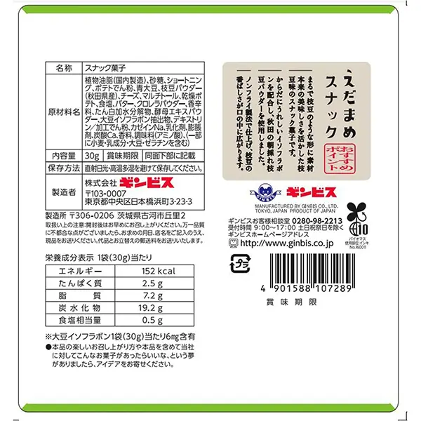 味觉魔法小零嘴Monter Wall Ginbis Edamame Snack 30g日本枝豆味零食30g非油炸类零食下酒菜低热量天然风味店小二推荐哦!