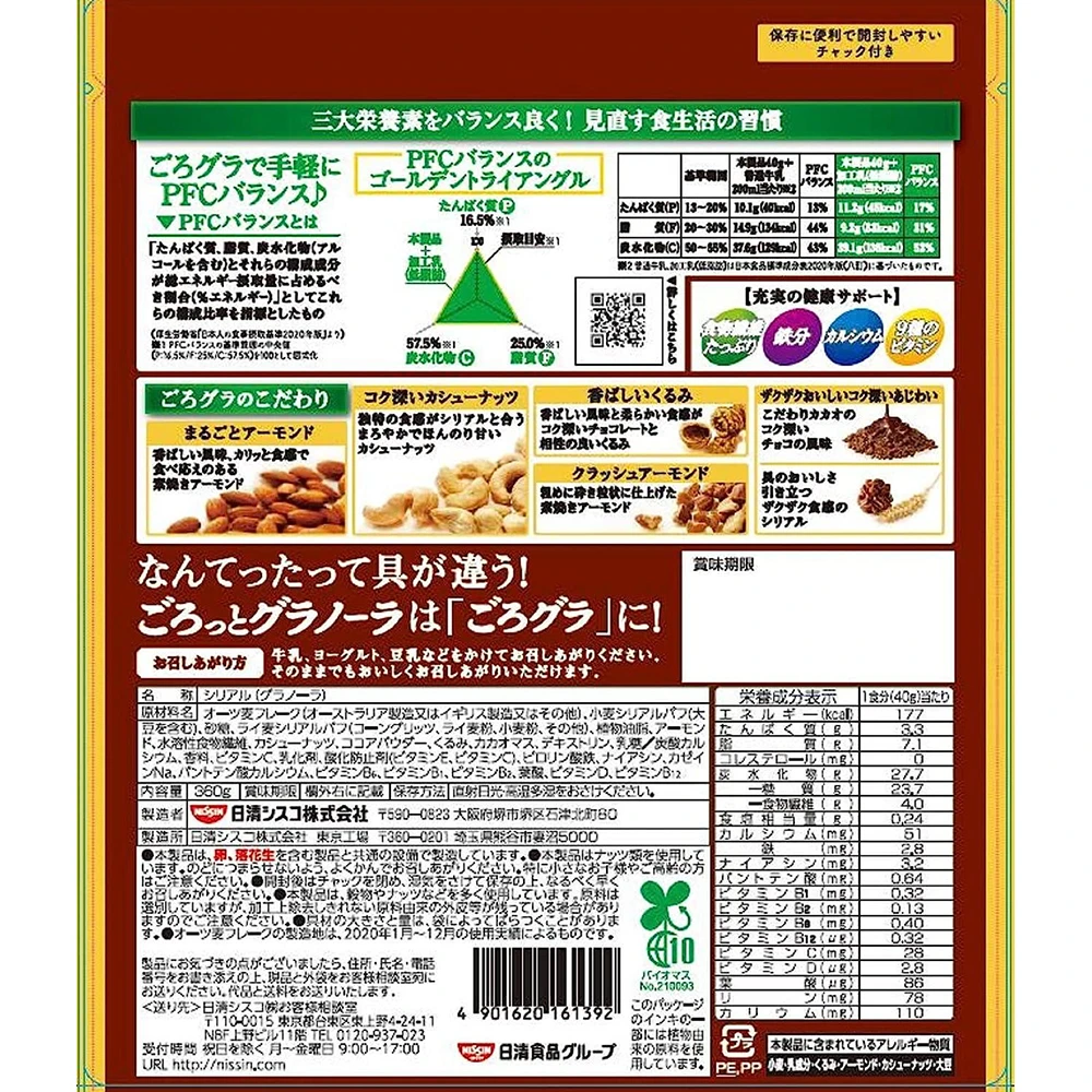 令人惊艳的好味早餐Nissin Cisco Gorogra Chocolate Nuts 320g日本nissin麦片nissin谷物麦片日本日清谷物早餐 巧克力坚果富含铁补铁补钙平衡营养 快速物流/慢速物流