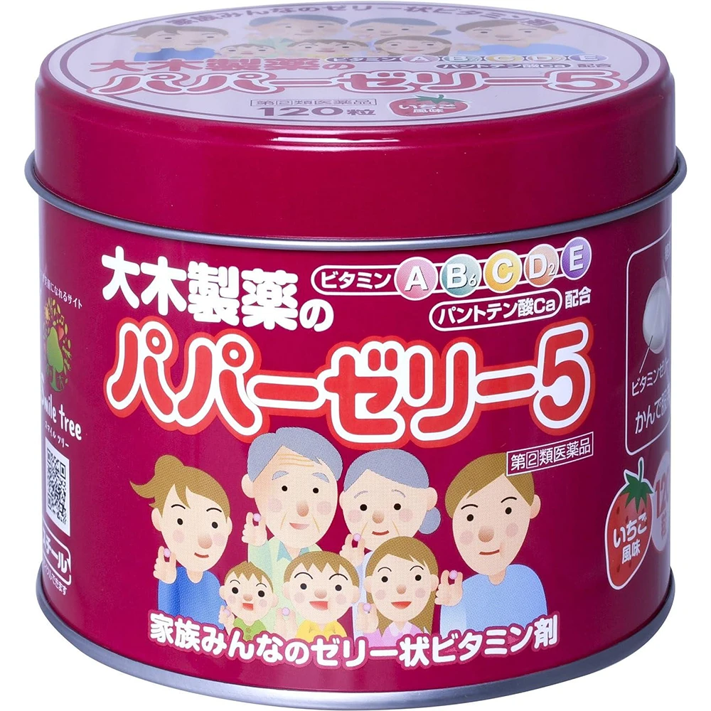 Papa- Jelly 5 120pcs 日本幼儿园指定大木制药维生素软糖婴幼儿童复合维生素营养补钙草莓 120粒