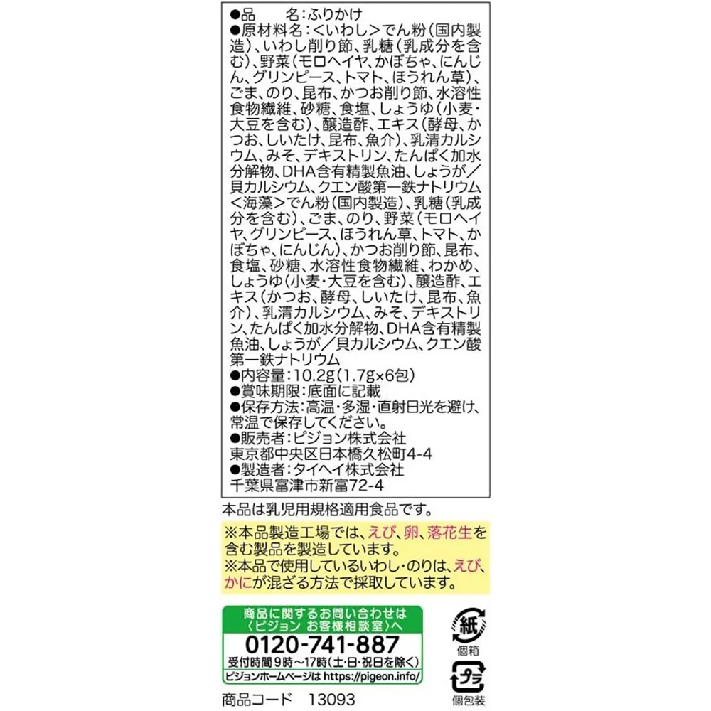 Pigeon Baby Food 5 Kinds Of Green And Yellow Vegetables Sprinkled With Vegetables Sardine / Seaweed