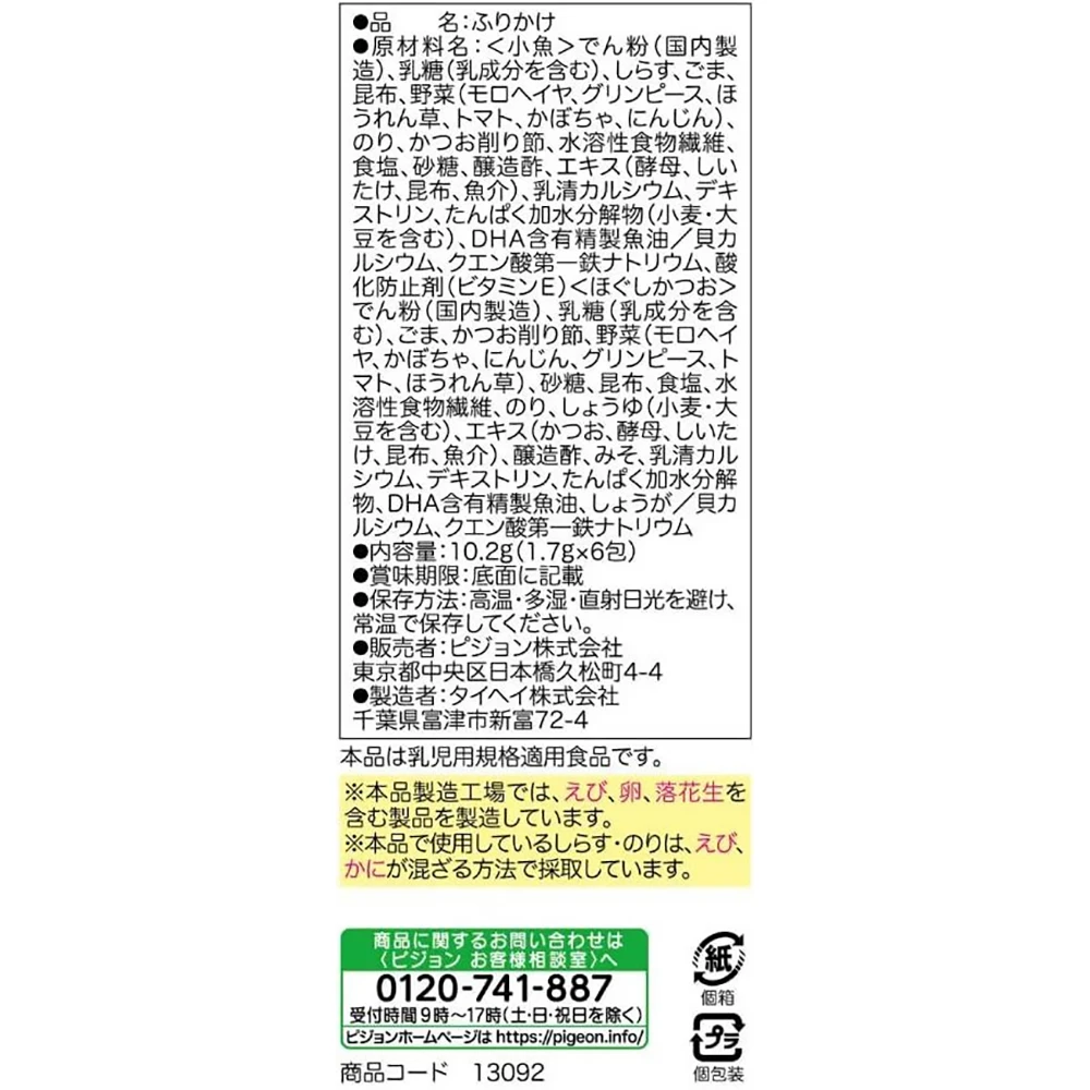 Pigeon Baby Vegetable Furikake Small Fish Loosen Bonito