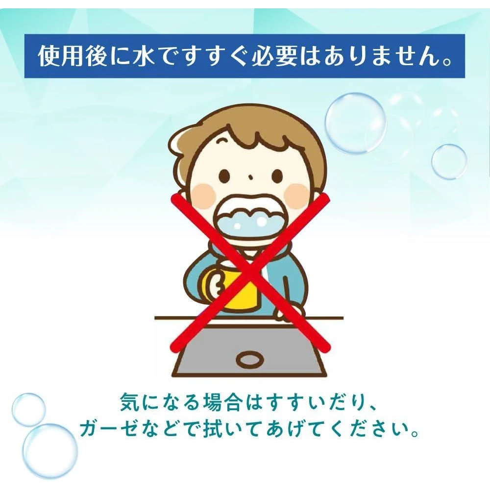★使用本产品后,无须以清水漱口。若您仍有顾虑,可漱口或用纱布巾擦拭