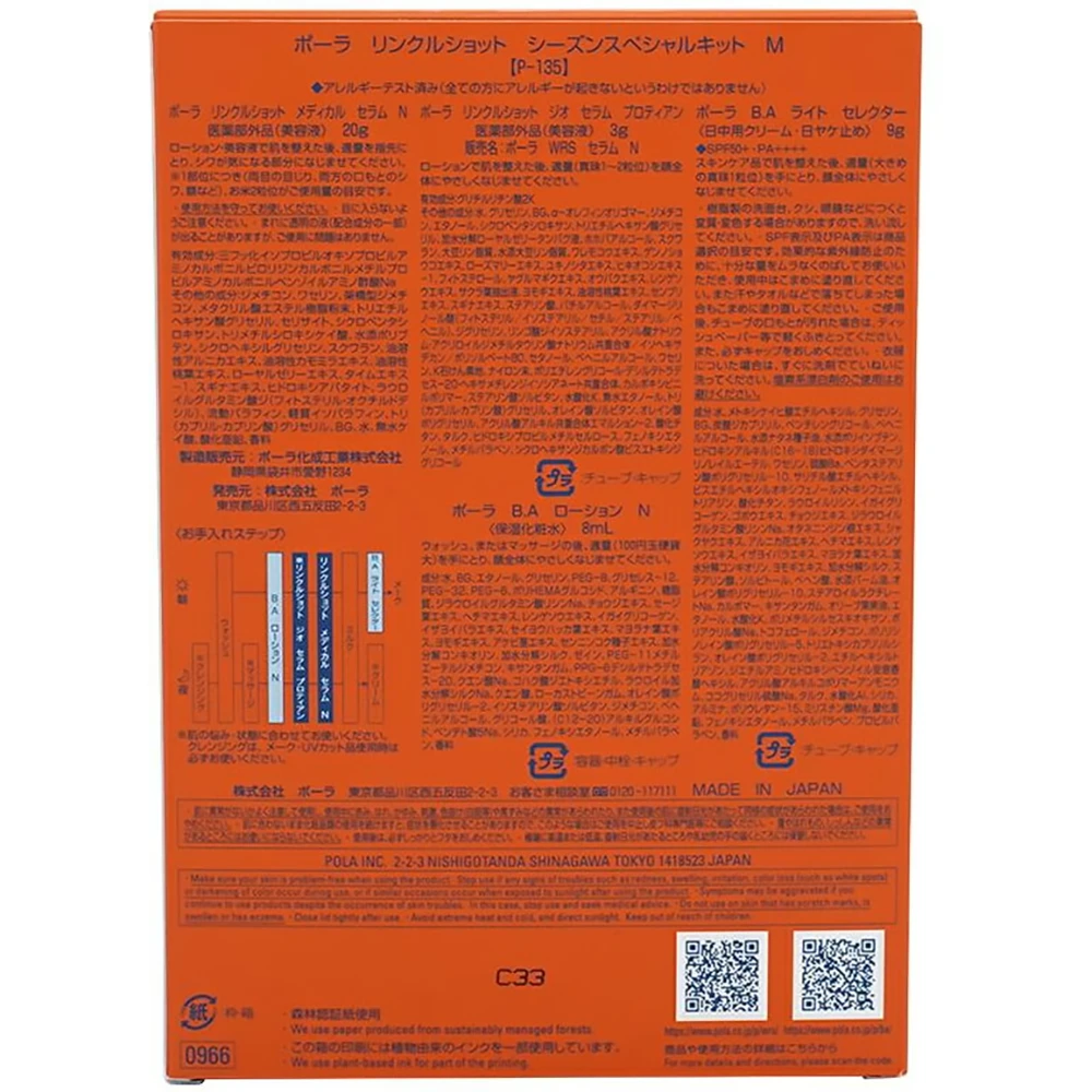 季节限定套装Pola Wrinkle Shot Season Special Kit Lpola除皱精华送pola 除皱精华小样 送防晒小样送 polaba化妆水小样
