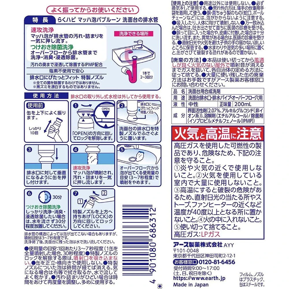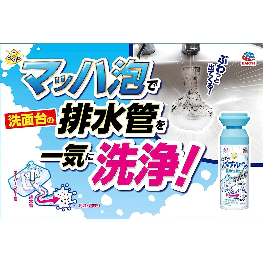 超简单的洗面台清洁剂!Raku Hapi Bubbleoon Washbasin Drain Pipe Washbasing Cleaner 200ml厕所洗面台泡沫清洁除菌剂200ml洗脸盆排水管洗脸盆清洁剂 厕所清洁除异味除霉菌 慢速物流only