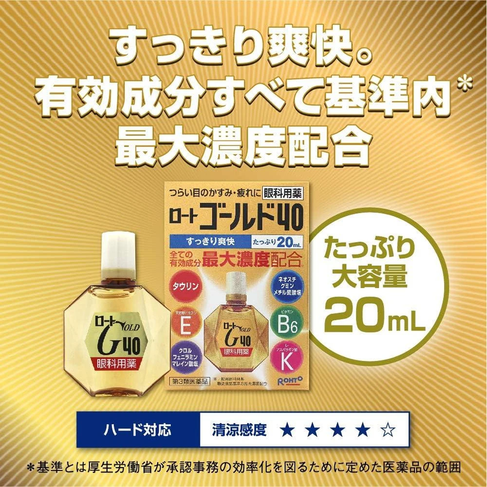Rohto Gold 40 20ml 金乐敦眼药水金乐敦滴眼液 改善视力模糊缓解眼部疲劳缓解眼睛瘙痒20ml