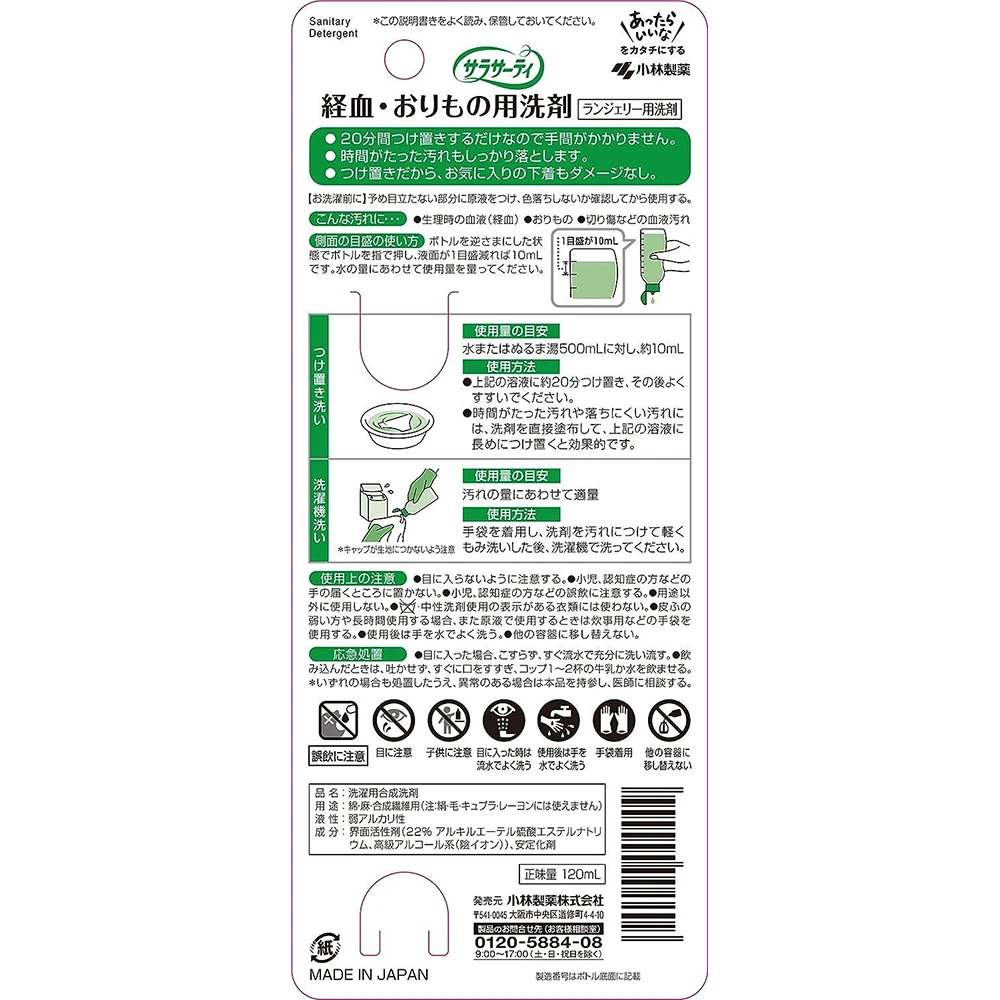 Kobayashi Sarasathi Lingerie Detergent 120ml小林制药女性内衣清洗剂除菌内裤专用洗剂120ml 经期用