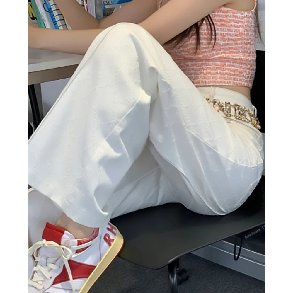 Seooocookie White Check Jeans #Size : Xs