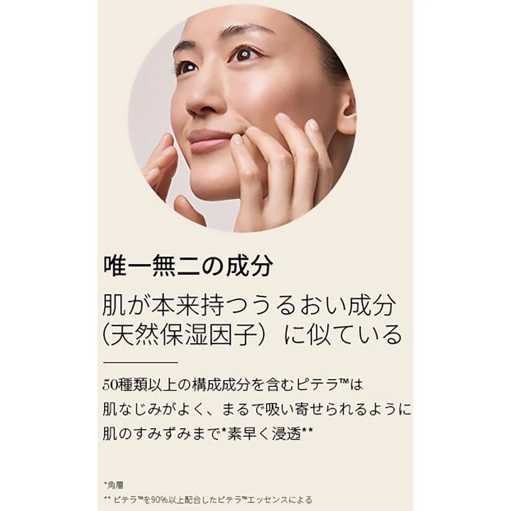 含92.7% 天然活肤酵母精华 Pitera,促进肌肤新陈代 谢 正 常 化,具有调整肌肤酸碱值平衡以及修护的效果,
