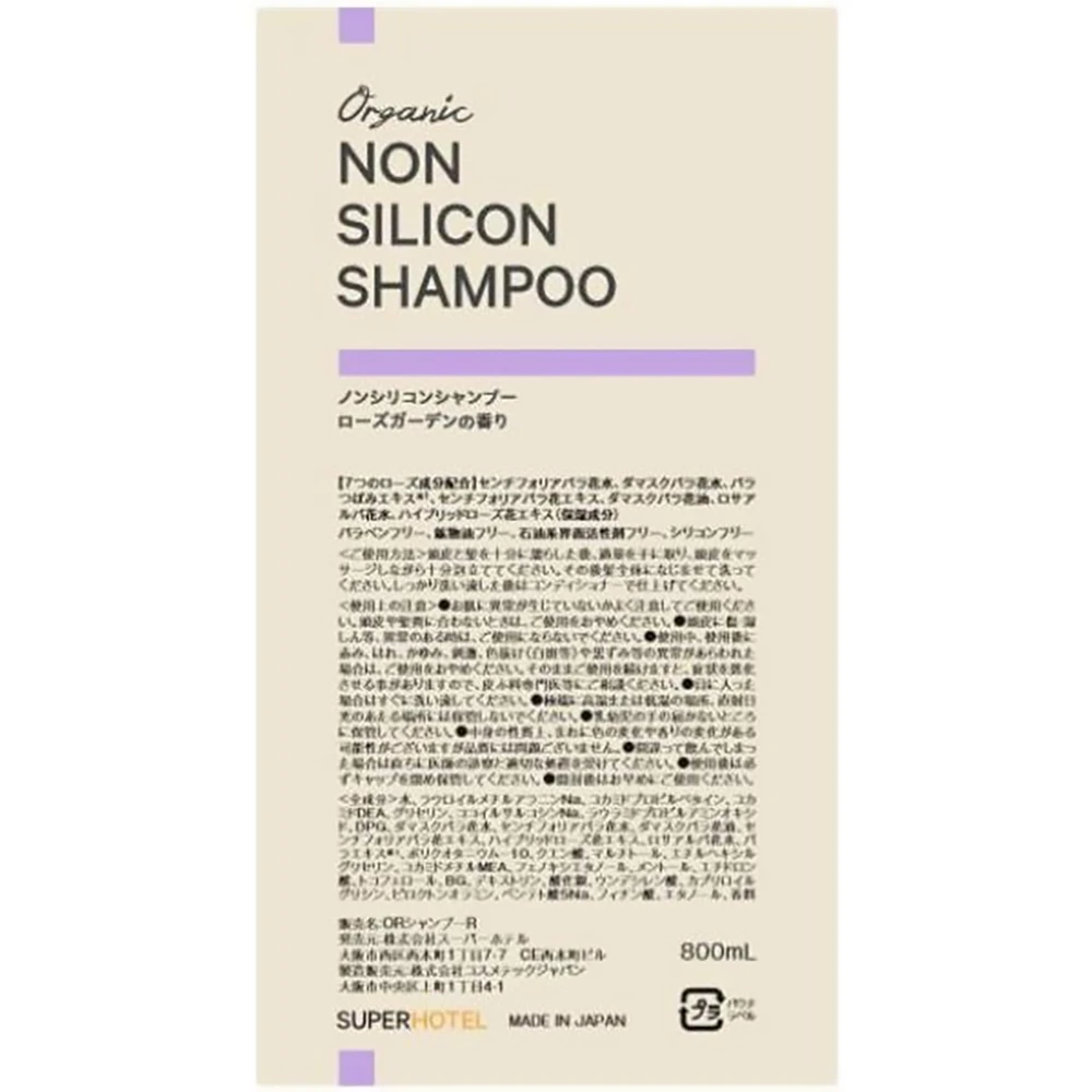 Super Hotel Organic Aroma Rosa Non-Silicone Shampoo, Stand Pouch 800ml日本连锁酒店Super hotel水户超级酒店专供酒店洗发水玫瑰精油洗发水无硅配方800ml替换装 快速物流/慢速物流