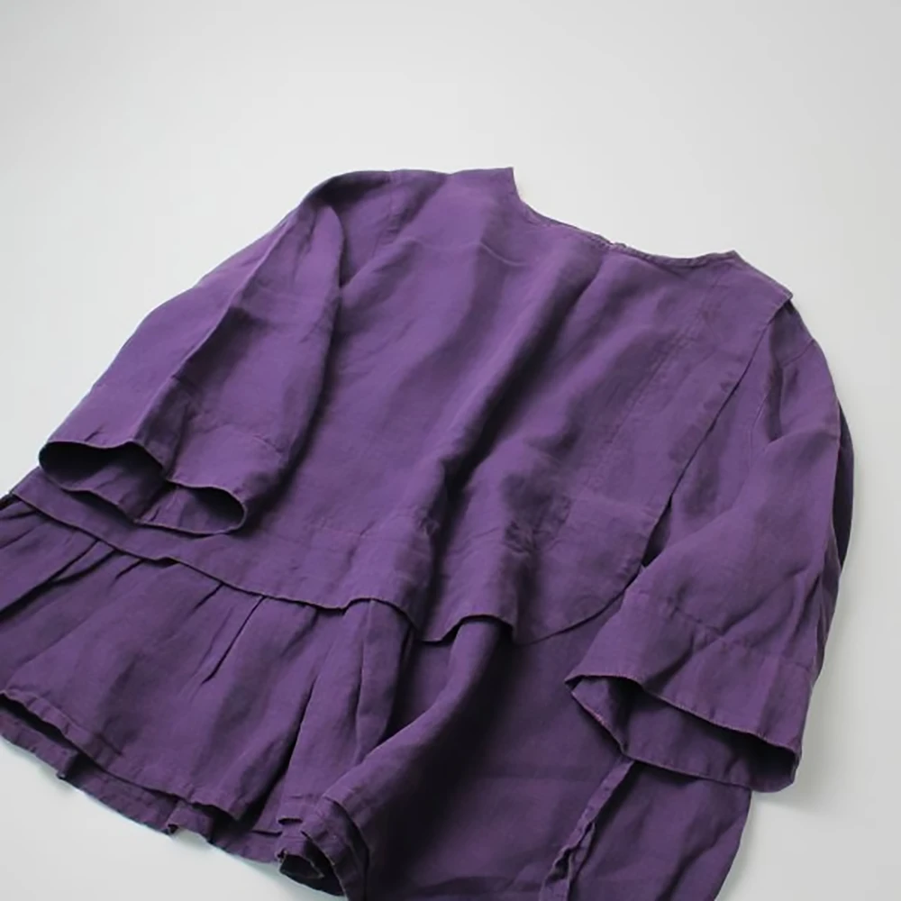 Tumugu Tsumugu Dyeing Processing Linen Layered Tunic Pullover F/Purple Hemp Tops Blouse [2400013374293]