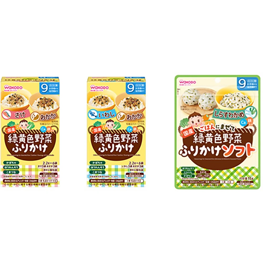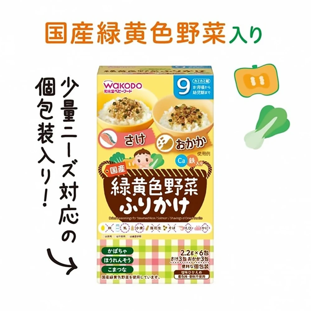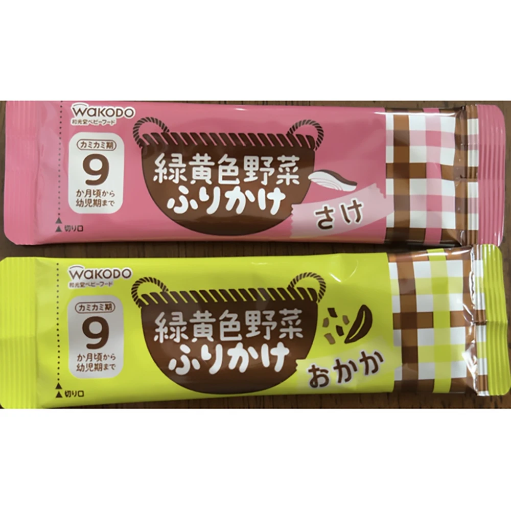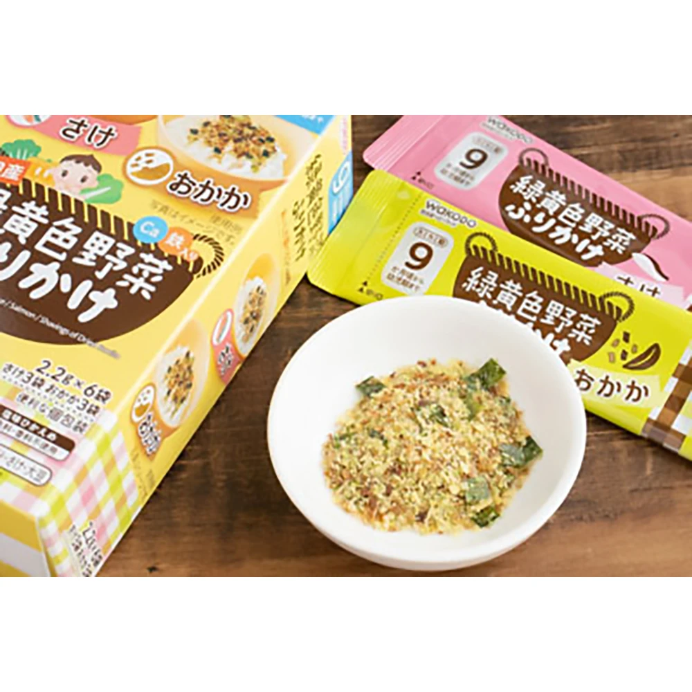 Wakodo 緑黄色野菜 Salmon / Okaka 2.2g x 6pcs日本和光堂婴儿辅食婴儿食品婴儿黄绿色蔬菜粉黄绿色鲑鱼和干木鱼粉+蔬菜调味粉2.2g6小条一盒包装