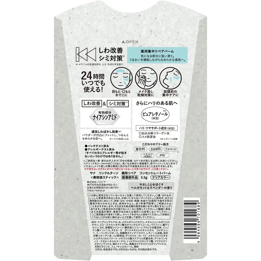 除皱精华膏Wrinkle Turn Niacinamide Medicated Repair Concentrate Balm 5.5g日本本土新品SANA补水保湿抗皱美容精华棒 sana改善皱纹 抗斑美容精华棒,平价!绝对是 ipsa精华棒的平替