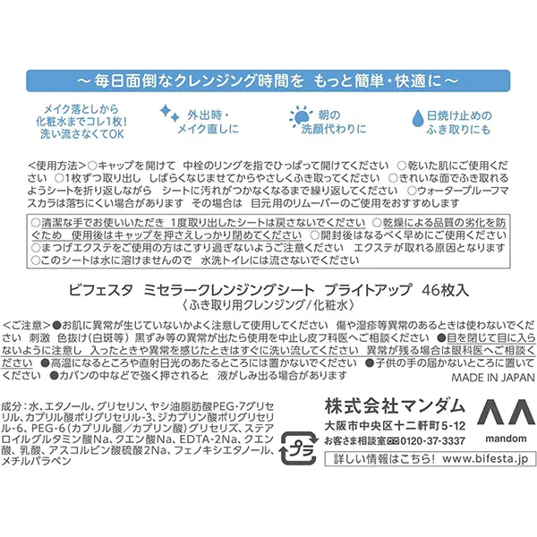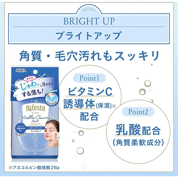 缤若诗卸妆湿巾,卸妆、洁面、化妆水只需这1片!Bifesta Micellar Cleansing Sheet Bright Up, 46 sheets Bifesta卸妆Bifesta卸妆巾Bifesta卸妆湿巾深层卸妆洁肤纸卸妆+洁面+保湿三合一 46抽(美白型透亮款) 可以作为早晨的化妆水保湿或洁面