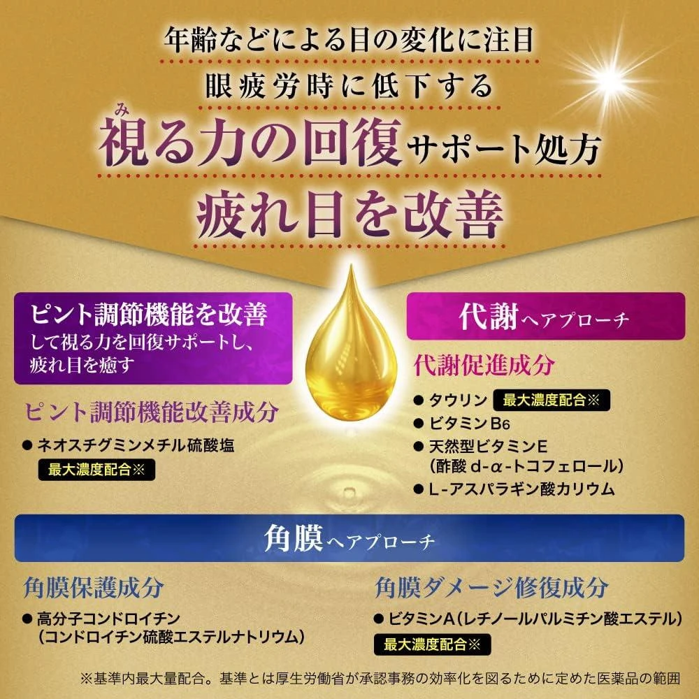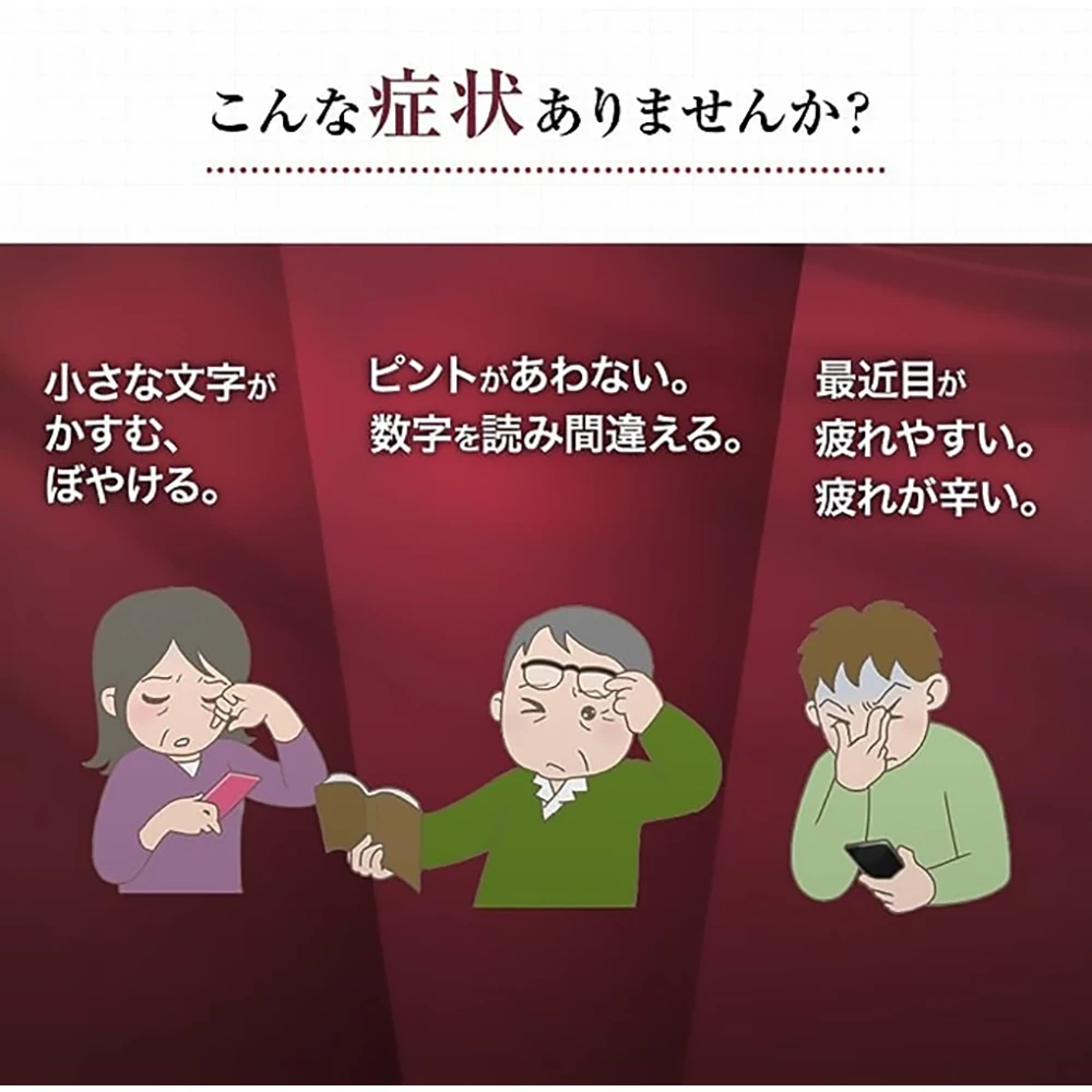 使用*视觉功能恢复支持处方*、治疗因年龄和乾燥引起的眼疲劳和视力模糊的眼药水、该处方专注于眼疲劳期间发生的视觉功能下降。